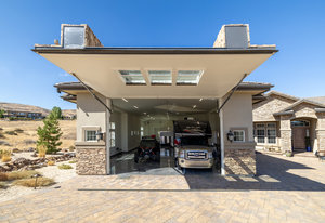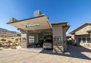 Over the top estate w/ unmatched views, 2,400 sq ft showcase garage accommodating up to 25 vehicles (size varying) and fully heated driveway with automatic snow detection. The commercial sized detached garage has a custom aviation-grade hidden door lift, remote blinds, 5-color marbling epoxy floors, cast iron drains, & insulated walls with dual heaters and ceiling fans. The space is RV-ready with 2-220 amp power plugs, a sewer drop, gas line, and a dedicated plug-in, designed for large toys, boats, & more.