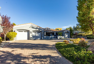 Juniper Ridge, Southwest Reno. This stunning 5,680-square-foot single story residence features four spacious bedrooms and three and a half bathrooms on one level. The generous master suite offers a spa-like retreat, while the expansive gourmet kitchen is perfect for entertaining. A recent high-end, contemporary remodel enhances the home's modern appeal. A beautiful atrium courtyard connects indoor and outdoor living, all set on a professionally landscaped half-acre lot. Located within the highly desirable Juniper Ridge Community of Southwest Reno, this impressive 5680 square foot, single story residence features four spacious bedrooms and three and a half bathrooms. The heart of the home is an ...