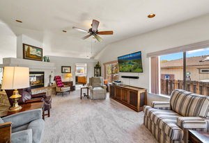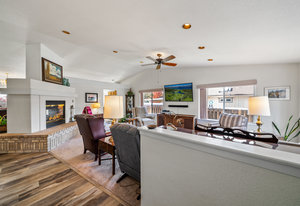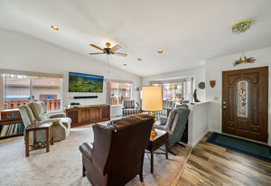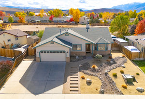 Jaw dropping views from this lovely home with no back neighbors and no HOA. The front yard is xeriscaped and easy maintenance. The new upgraded neutral carpet, neutral paint, and laminate wood look floors through most of this home allow you to move in and easily make it your own. The spacious living room features vaulted ceilings, a ceiling fan and the perfect bay window for your holiday tree. There is a cozy dual sided fireplace that provides warmth in both the living and dining areas. Chores won't feel like chores with the beautiful view of the mountains from your kitchen sink in the nicely designed kitchen. The primary bedroom is the perfect size, has vaulted ceilings, a ceiling fan, and a ...