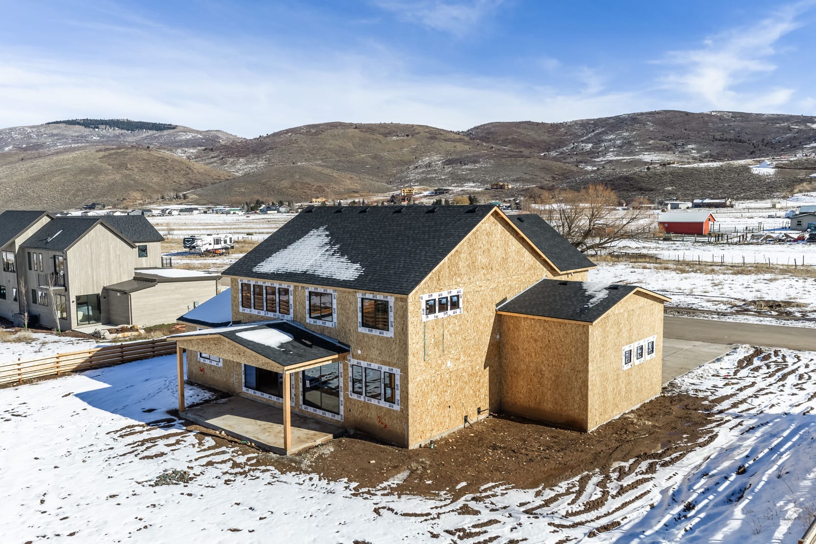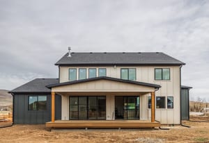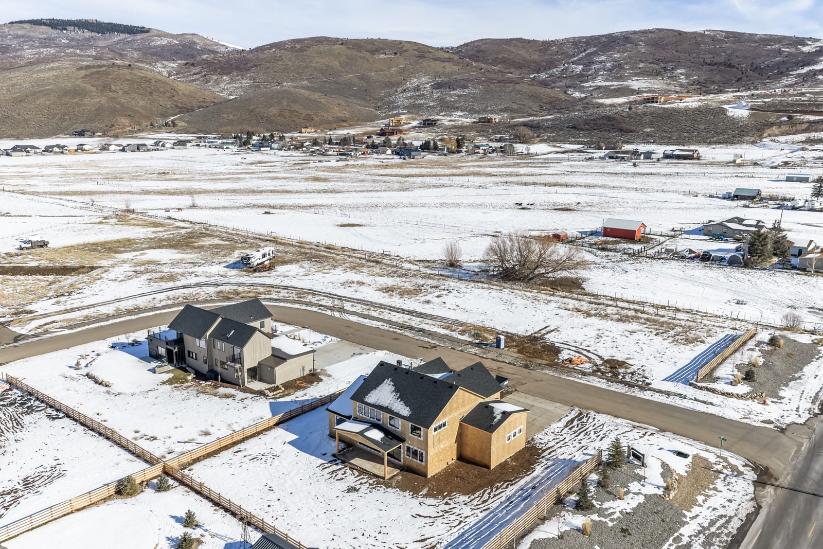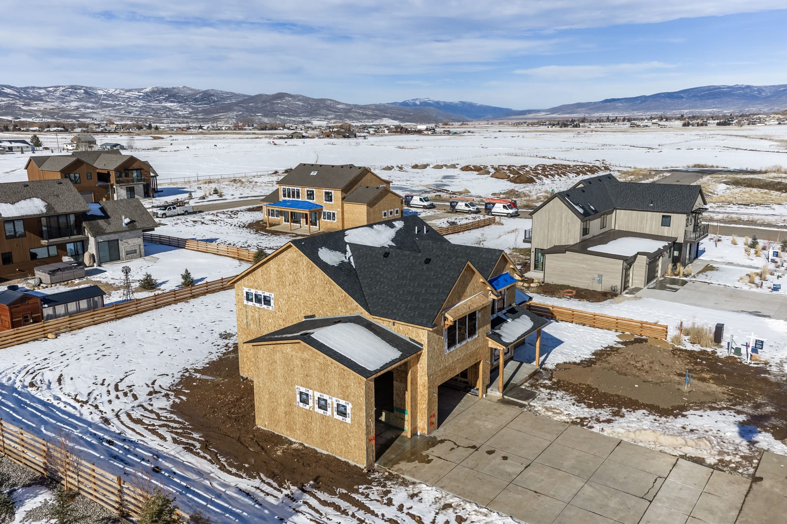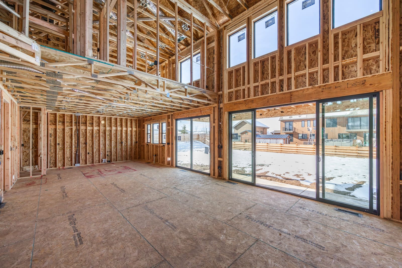 Uinta House offers a modern, spacious design just 30 minutes from Park City, defined by clean lines and abundant natural light. The open-concept living room features dramatic double-height ceilings, while large windows throughout the home flood every space with sunlight. The chef’s kitchen is equipped with high-end appliances, a generous pantry, and elegant granite and quartz countertops in both the kitchen and bathrooms. Seamless indoor-outdoor living is enhanced by the covered back porch with floor-to-ceiling sliding doors, ideal for taking in the breathtaking views of the Uintas. The main floor provides ample living space, including a large walk-in closet, a flexible room off the entryway ...