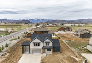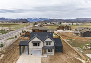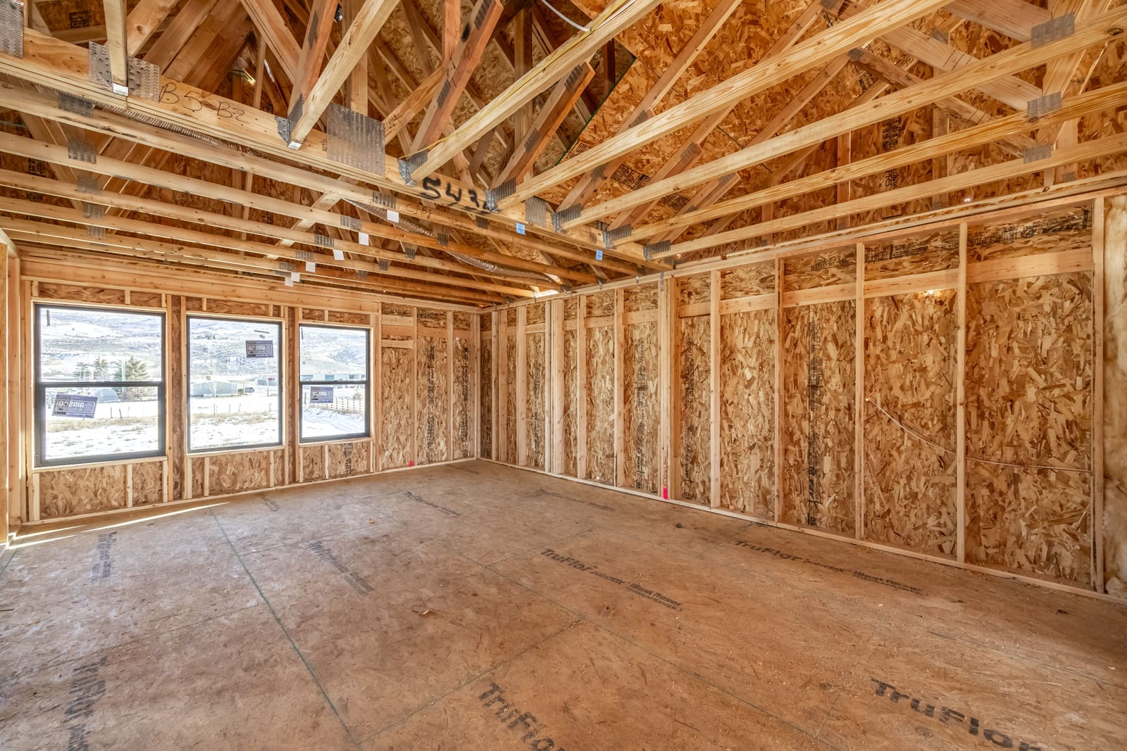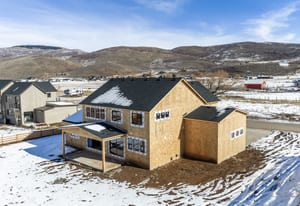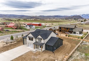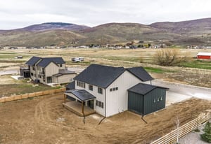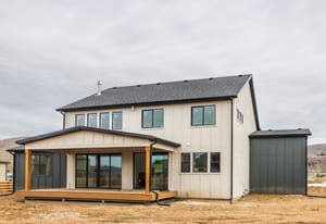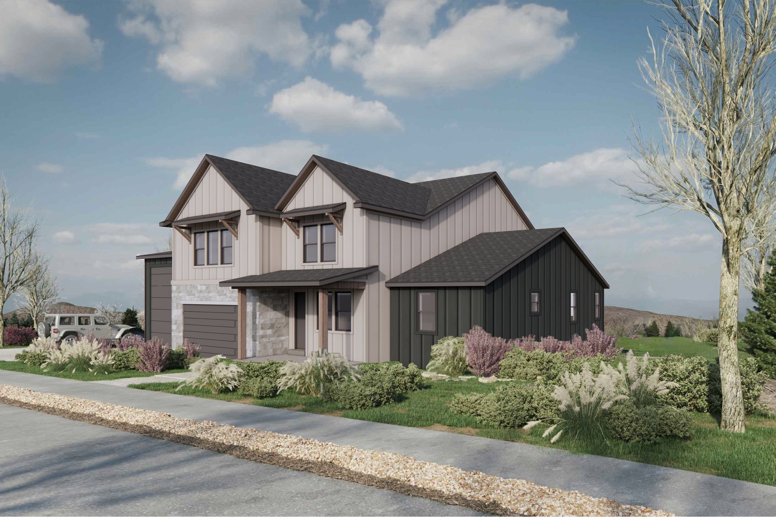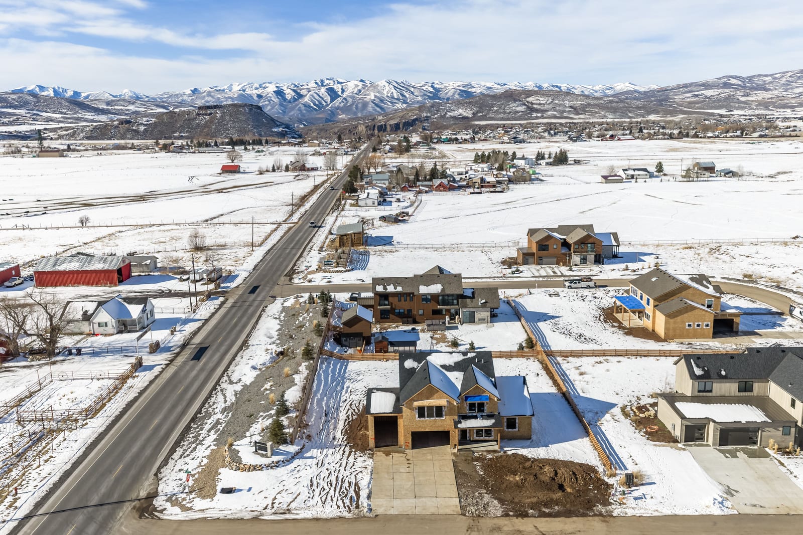 Uinta House offers a modern, spacious design just 30 minutes from Park City, defined by clean lines and abundant natural light. The open-concept living room features dramatic double-height ceilings, while large windows throughout the home flood every space with sunlight. The chef’s kitchen is equipped with high-end appliances, a generous pantry, and elegant granite and quartz countertops in both the kitchen and bathrooms. Seamless indoor-outdoor living is enhanced by the covered back porch with floor-to-ceiling sliding doors, ideal for taking in the breathtaking views of the Uintas. The main floor provides ample living space, including a large walk-in closet, a flexible room off the entryway ...