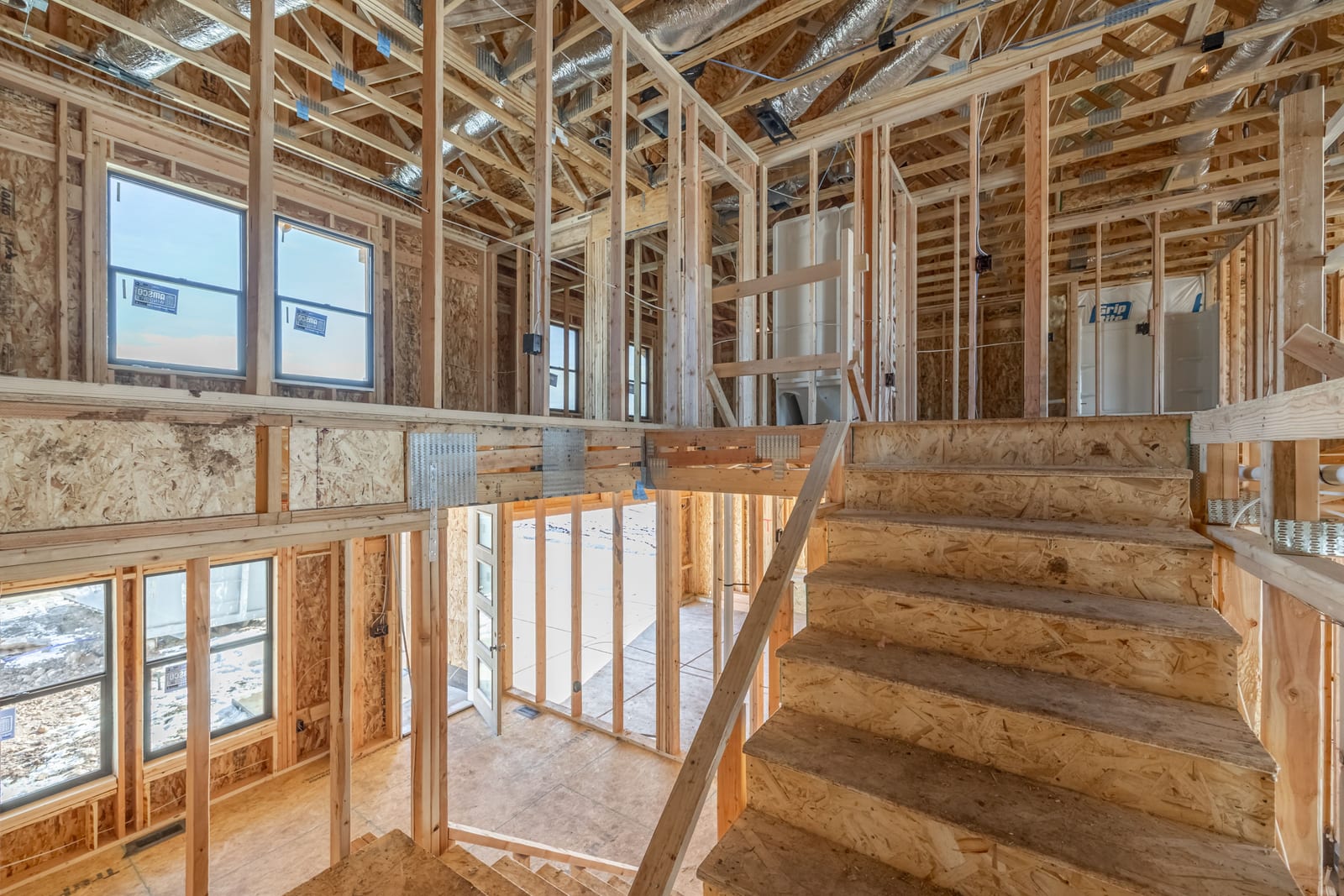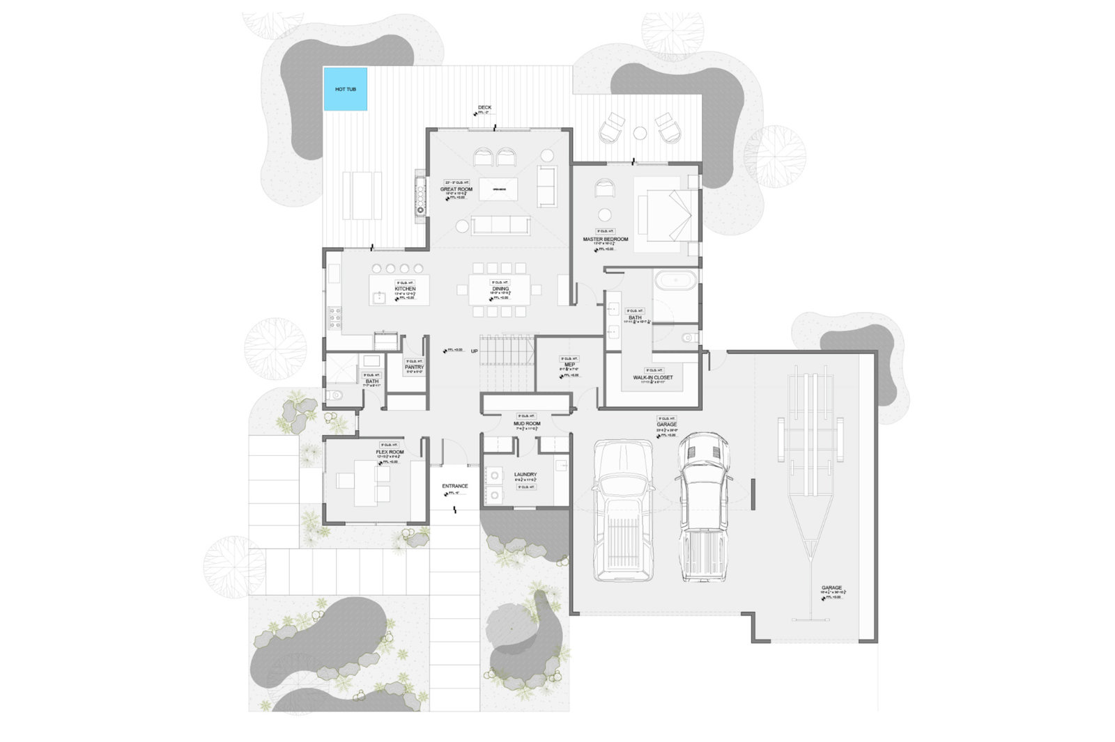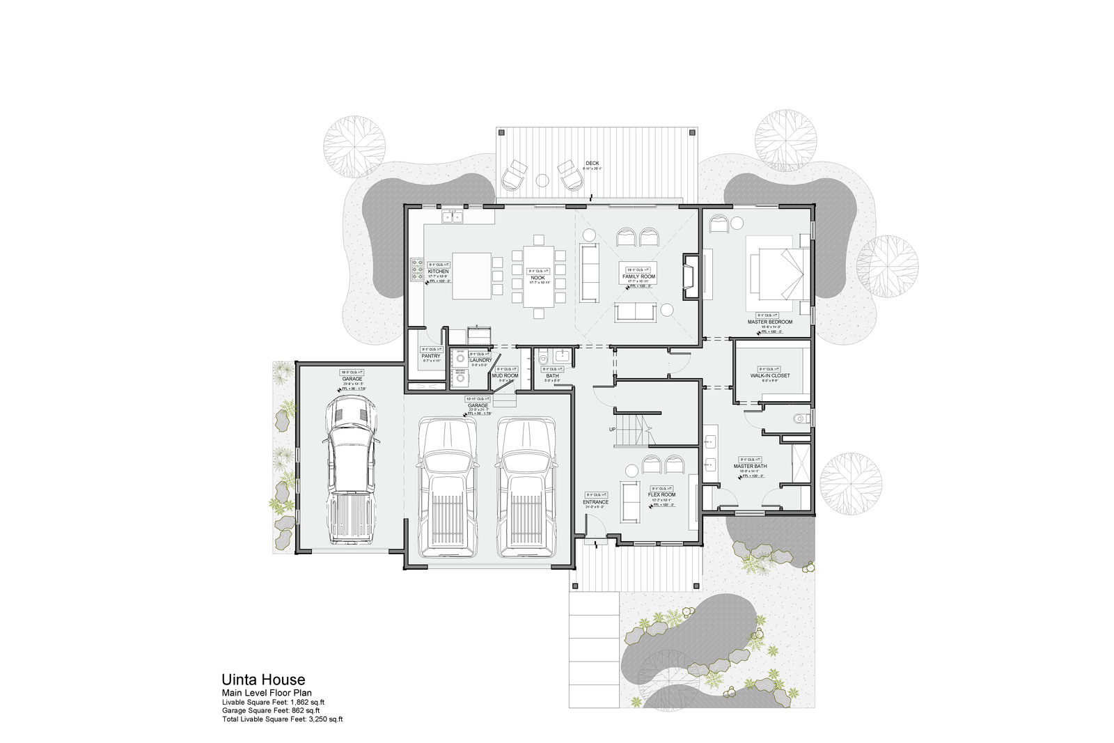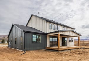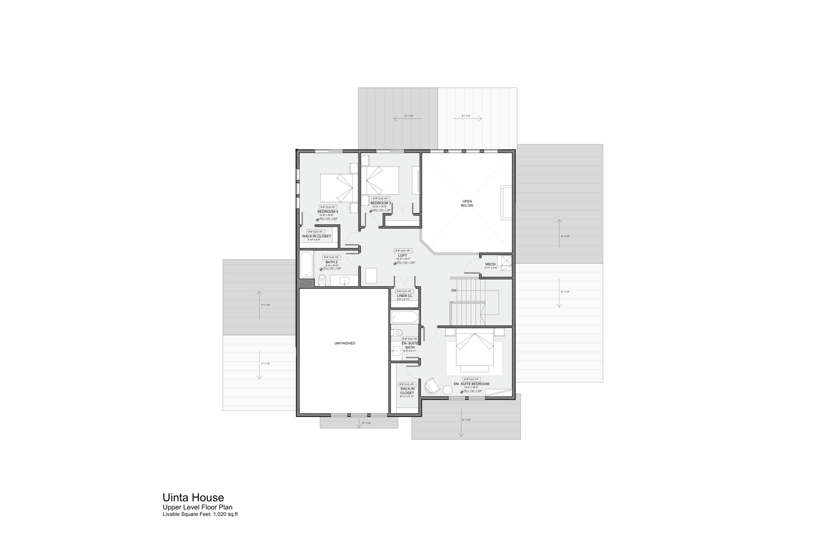 Uinta House offers a modern, spacious design just 30 minutes from Park City, defined by clean lines and abundant natural light. The open-concept living room features dramatic double-height ceilings, while large windows throughout the home flood every space with sunlight. The chef’s kitchen is equipped with high-end appliances, a generous pantry, and elegant granite and quartz countertops in both the kitchen and bathrooms. Seamless indoor-outdoor living is enhanced by the covered back porch with floor-to-ceiling sliding doors, ideal for taking in the breathtaking views of the Uintas. The main floor provides ample living space, including a large walk-in closet, a flexible room off the entryway ...