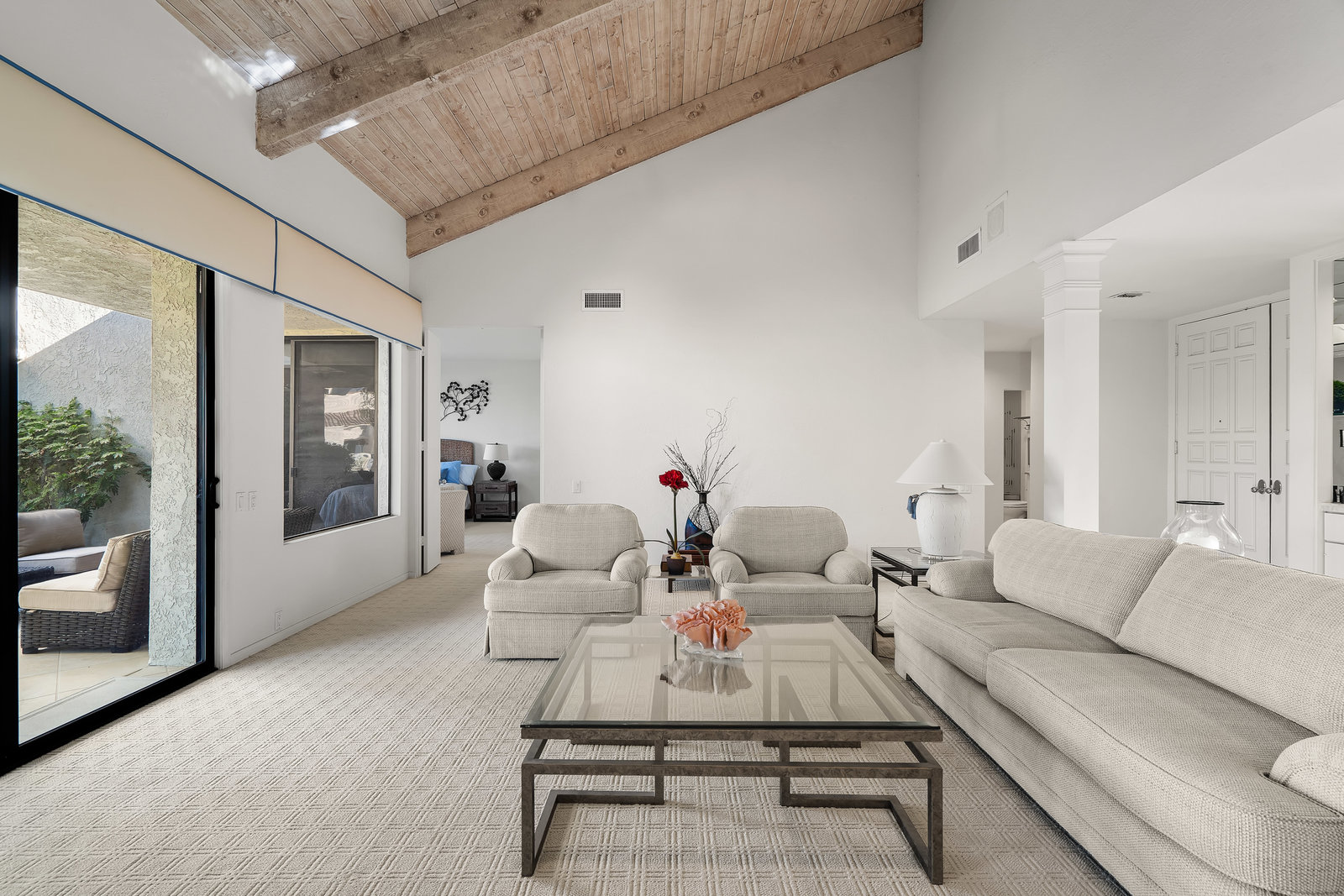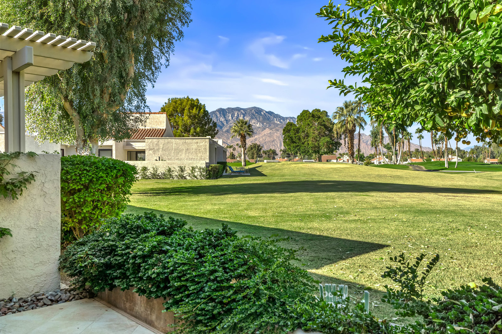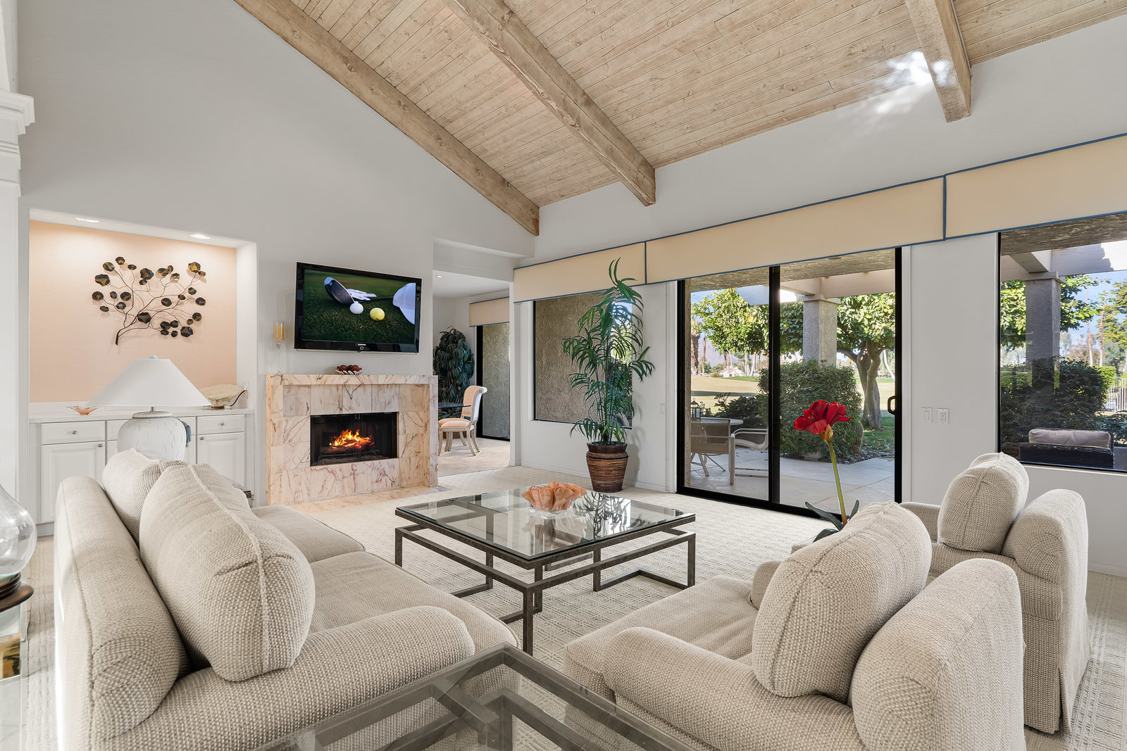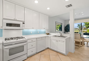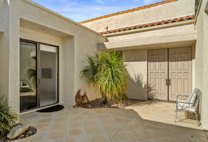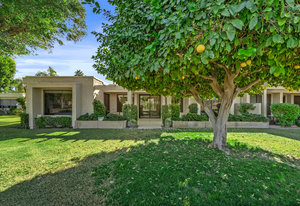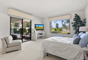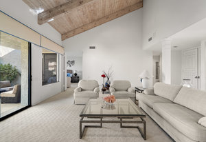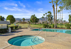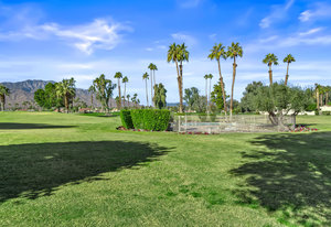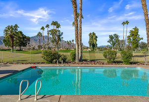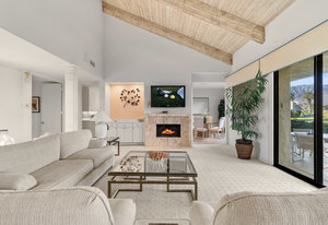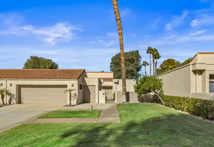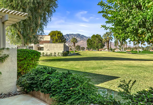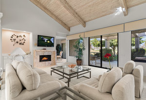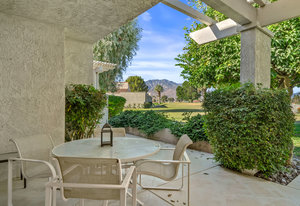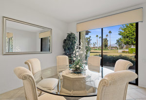 Tranquil living awaits while overlooking the famed Dinah Shore Tournament Course at Mission Hills Country Club, perhaps the most social club in the desert. Enjoy the views on an entertainer's back patio, just a stone's throw to a large community pool area. Featuring an ideal floor plan with well-sized areas and dramatic vaulted wood ceilings, this furnished residence is tucked off the road and very well-located near the amenities of Mission Hills Country Club residents. Notable attributes include: a spacious two-car plus golf cart garage; remodeled kitchen displaying quartz counters and vibrant backsplash with a bar and breakfast nook seating; three spacious bedrooms and three ...