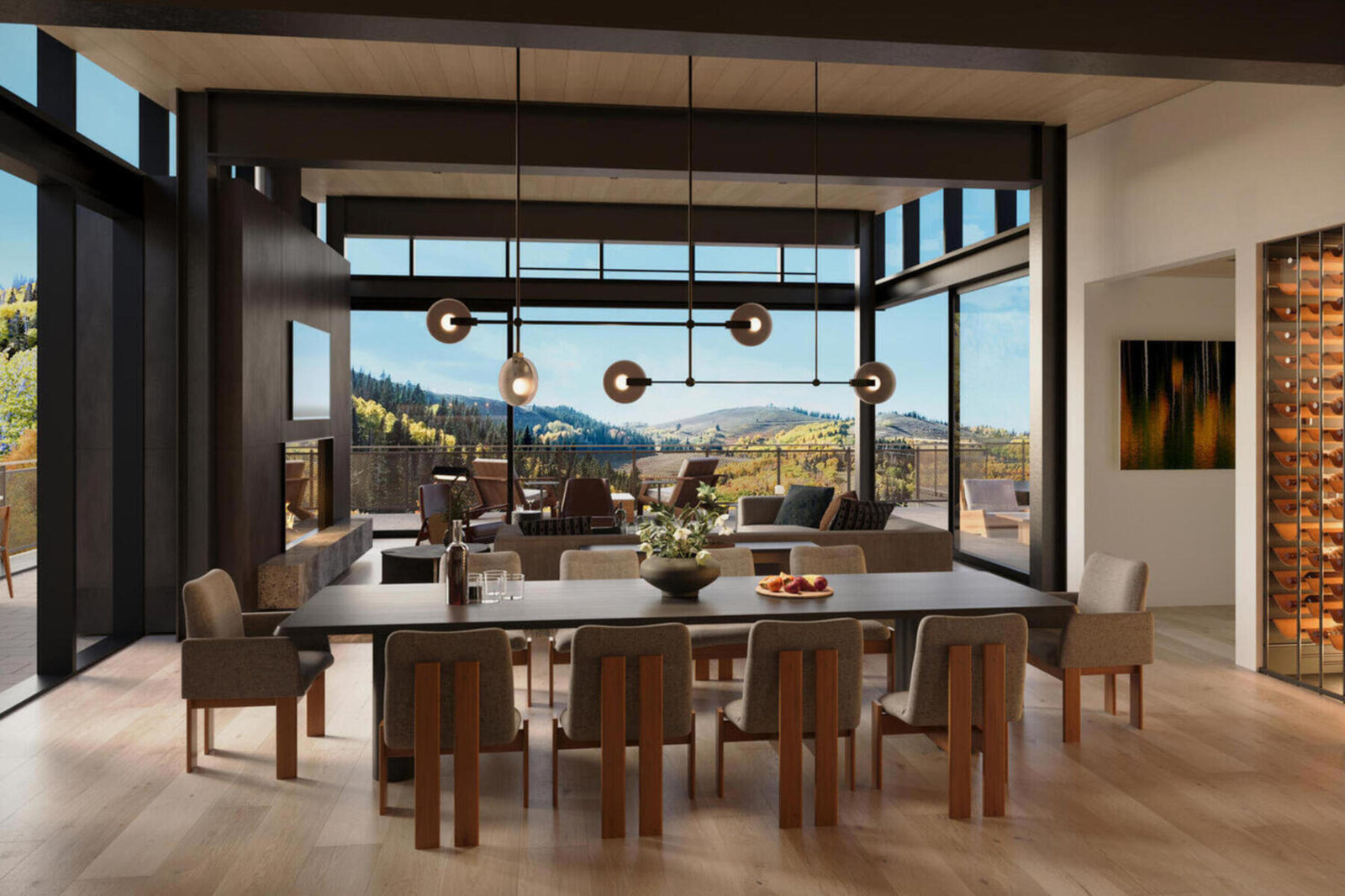 When they say they saved the best for last, this is what they’re talking about. Sommét Blanc includes three alpine lodges comprising 49 luxury Residences and Penthouses located on the last, best, ski-in/ski-out parcel in Empire Pass at Deer Valley® Resort. World-renowned architect Tom Kundig of Olson Kundig has created a jaw-dropping signature design featuring butterfly roof lines, cantilevered structures, single-level living, expansive outdoor spaces, floor-to-ceiling windows, and modern mountain design. With through-building unit design, every residence enjoys breathtaking views. Sommét Blanc features an extensive list of amenities and services that includes an arrival lobby and fireside lounge with a concierge desk, valet parking, an onsite restaurant & bar with ski beach patio, slope-side pool & patio with multiple hot tubs, and outdoor gathering spaces, pool locker rooms with saunas, spa treatment rooms, fitness center, yoga studio, a bowling alley with café and game room, executive boardroom, spacious ski locker room, ski valet service, après-ski lounge with expansive outdoor patio, children’s activity playroom, golf simulators, speakeasy styled owner’s lounge, and designated underground parking in each building featuring adjacent oversized storage units with each owner space ready for an electric car charger installation. Residence B402 is a fourth-floor unit with stunning views straight up to Empire Bowl and Lady Morgan Bowl. The home features four bedrooms, five bathrooms, a den/media room, and two outdoor decks. Finishes include floor-to-ceiling windows, wood floors, wood ceilings, wool carpet, custom cabinets and built-ins, natural stone countertops and backsplash, Dacor contemporary appliances, Dornbracht fixtures, Sun Valley Bronze hardware, wine storage, automated Lutron shades, and two Tom Kundig signature design fireplaces.