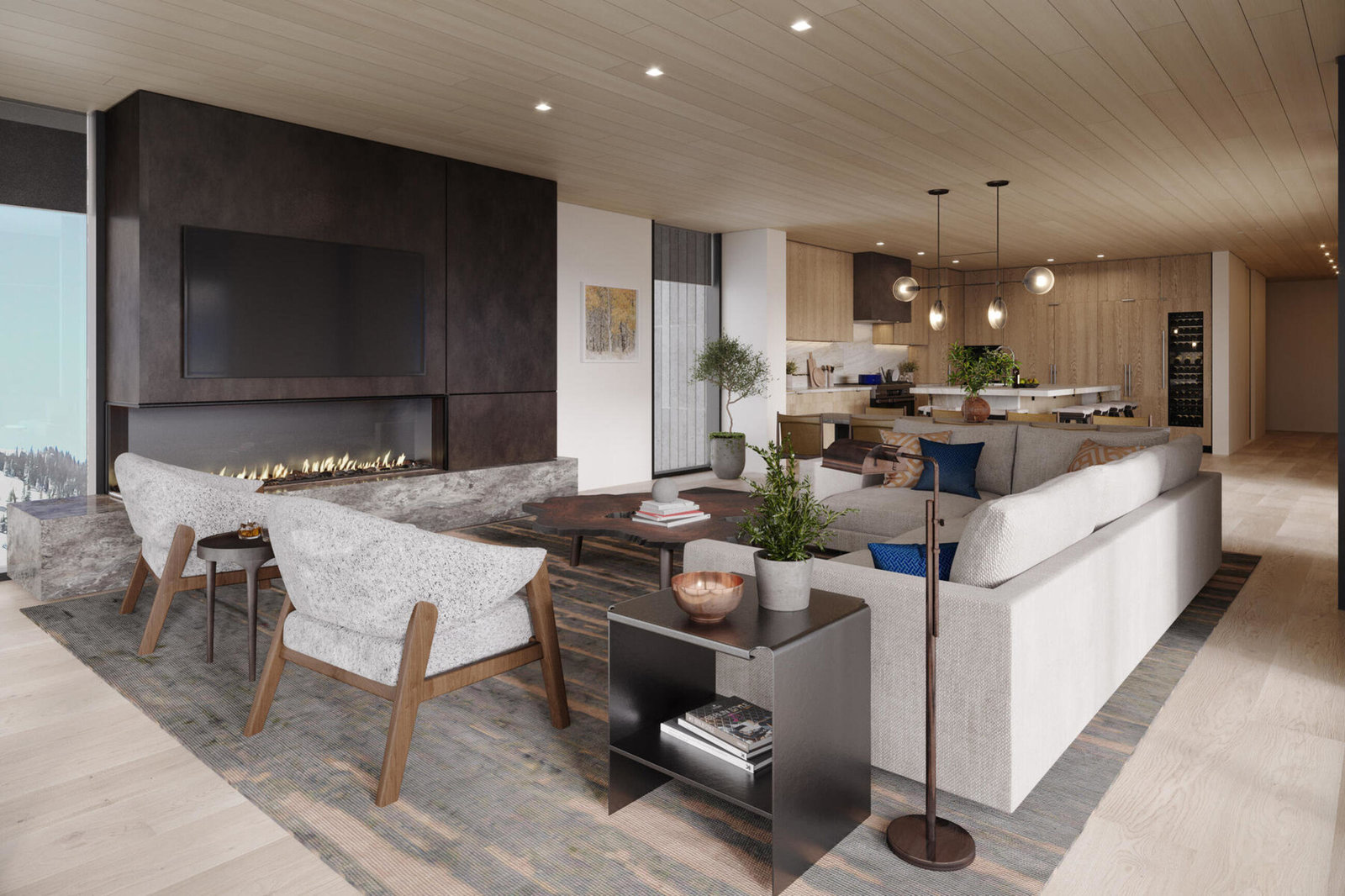 When they say they saved the best for last, this is what they’re talking about. Sommét Blanc includes three alpine lodges comprising 49 luxury Residences and Penthouses located on the last, best, ski-in/ski-out parcel in Empire Pass at Deer Valley® Resort. World-renowned architect Tom Kundig of Olson Kundig has created a jaw-dropping signature design featuring butterfly roof lines, cantilevered structures, single-level living, expansive outdoor spaces, floor-to-ceiling windows, and modern mountain design. With through-building unit design, every residence enjoys breathtaking views. Sommét Blanc features an extensive list of amenities and services that includes an arrival lobby and fireside lounge with a concierge desk, valet parking, an onsite restaurant & bar with ski beach patio, slope-side pool & patio with multiple hot tubs, and outdoor gathering spaces, pool locker rooms with saunas, spa treatment rooms, fitness center, yoga studio, a bowling alley with café and game room, executive boardroom, spacious ski locker room, ski valet service, après-ski lounge with expansive outdoor patio, children’s activity playroom, golf simulators, speakeasy styled owner’s lounge, and designated underground parking in each building featuring adjacent oversized storage units with each owner space ready for an electric car charger installation. Residence B401 is a fourth-floor, spacious end unit with stunning ridgeline views of Empire Bowl, Lady Morgan Bowl, and the Lucky Jack ski run. The home features three bedrooms, four bathrooms, a den/media room, an outdoor deck, and floor-to-ceiling windows. Finishes include wood floors, wood ceilings, wool carpet, custom cabinets and built-ins, natural stone countertops and backsplash, Dacor contemporary appliances, Dornbracht fixtures, Sun Valley Bronze hardware, wine storage, automated Lutron shades, and two Tom Kundig signature design fireplaces.