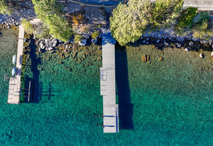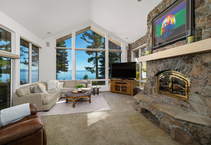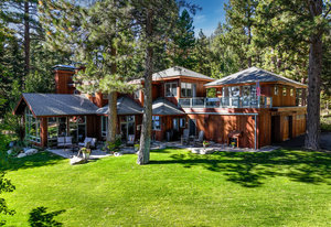 This exquisite estate, offered by the original owner, exemplifies pride of ownership and meticulous care. Nestled at the gem of the Sierras, this remarkable property is located in the breathtaking surroundings of Lake Tahoe. The estate boasts an expansive, open floor plan, with four spacious bedrooms and a design emphasizing both luxury and comfort. Constructed with robust steel beam architecture, this home promises durability and resilience. Situated within an a private, gated community that includes only two other estates, the property spans approximately 11 acres of split lakefront, providing an unparalleled sense of privacy and seclusion. One of the standout features of this estate is the new pier, shared with only one other home and includes three buoys, ensuring direct and convenient lake access. The property also offers ample excess coverage, presenting opportunities for further enhancements or developments. Every room in the house presents unobstructed, panoramic views of Lake Tahoe, allowing you to enjoy the stunning scenery year-round. The mature landscaping complements the natural beauty of the location, with hydronic heating ensuring warmth and comfort throughout the cooler months. Outdoor living is enhanced by beautiful quartzite patios, perfect for relaxing or entertaining guests. The grand room is a masterpiece with cathedral windows, a stone hearth, and a wood-burning fireplace, creating a cozy yet impressive space. Additional fireplaces in the main bedroom and guest room, built from stone gathered from the property, add a unique and rustic charm. The level lot, the last of a family compound, offers practicality and ease of access. The estate includes a three-stall garage with ample space for storage and shelving, along with a separate storage shed. Inside, custom hardwood cabinets are featured throughout the home, with numerous storage nooks, including a convenient laundry chute. The kitchen is a chef's dream, featuring granite countertops, a walk-in pantry, open and bright keeping you in the fun and conversation with a large breakfast bar for gathering while cooking. Both ground floor and second-story suites provide comfort and convenience, each with large walk-in closets. Underground utilities ensure a clean and unobstructed landscape, with two fire hydrants, one of which is located on the property, adding an extra layer of safety and security. The gated side yard provides additional privacy and security. This estate is a unique and rare opportunity to own a piece of paradise at Lake Tahoe. With its premium location, luxurious amenities, and exceptional construction, this property is perfect for those seeking a blend of elegance, comfort, and natural beauty. Don’t miss this chance to own an extraordinary estate at one of the most beautiful locations in the world, make your private showing appointment today. Seller will offer concessions.
