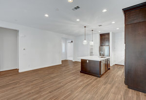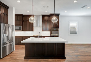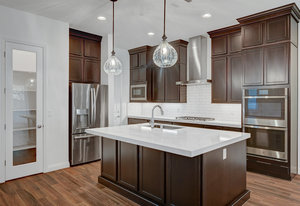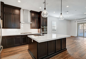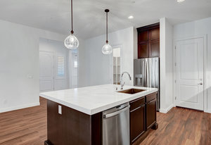 with stainless appliances, double oven, boasting luxurious quartz countertops, an abundance of storage