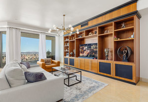 Welcome to Unit 807 at One Queensridge Place, an exceptional fully furnished, turn-key residence on the 8th floor. This 2-bedroom home is a perfect blend of sophistication and comfort, featuring elegant updates like designer light fixtures and custom window treatments. The residence includes a dedicated home office, ideal for productivity or creative pursuits, and a gourmet chef's kitchen, perfect for culinary enthusiasts, complete with premium appliances and exquisite finishes. Enjoy breathtaking panoramic views of the iconic Las Vegas Blvd, the serene community pool, and the majestic Red Rock Mountains. Whether you're entertaining or unwinding, this residence offers luxury living at its ...
