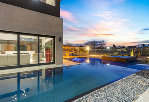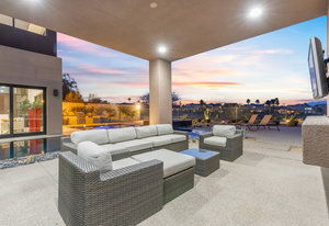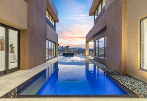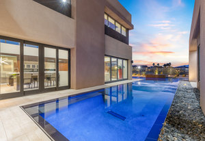 Set behind the gates of Marquis at Seven Hills, 1341 Villa Barolo is a striking Blue Heron architectural estate where modern design meets sweeping horizon views. Positioned on the premier Serket golf course, this 5,805 sq. ft. 6 bedroom, 5 1/2 bath, 4 car garage residence captures an ever-changing backdrop of emerald fairways, mountain silhouettes, and the glittering Las Vegas Strip. A tranquil Zen courtyard with water feature introduces a home defined by light, volume, and seamless connection to the outdoors. Soaring ceilings, disappearing glass walls, and a dramatic linear fireplace create an atmosphere both expansive and intimate. The chef’s kitchen is a statement in form and function, appointed with Thermador and Gaggenau appliances, quartz surfaces, custom cabinetry, a waterfall island, and a fully equipped butler’s pantry designed for effortless entertaining. The primary retreat floats privately above the landscape, opening to a serene terrace and spa-inspired bath sanctuary. Additional spaces include an executive office, media lounge, and thoughtfully designed guest suites that provide comfort and privacy for family and visitors alike. Outdoors, the estate transforms into a private resort. An oversized infinity pool and spa merge visually with the golf course beyond, while multiple lounge areas and a full outdoor kitchen create a setting ideal for both quiet mornings and unforgettable evenings under the desert sky.1341 Villa Barolo is more than a home — it is a refined architectural retreat designed to elevate everyday living.