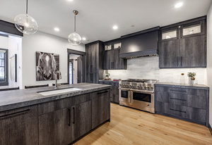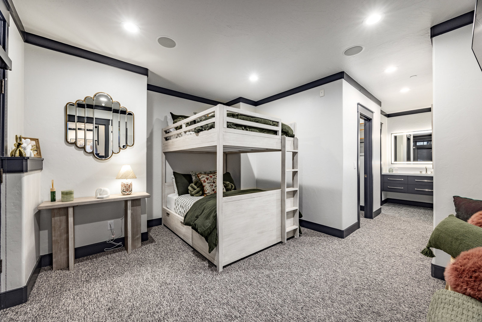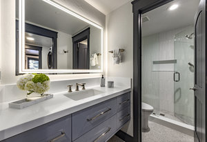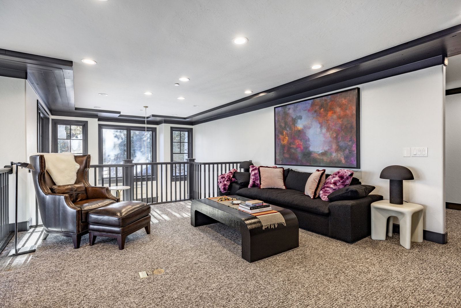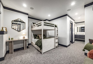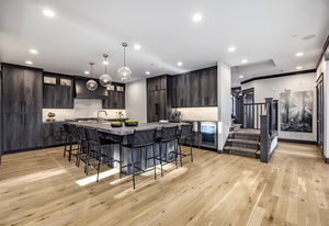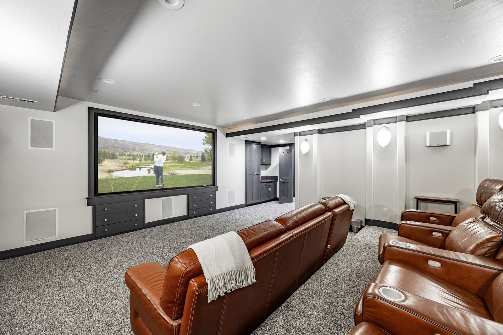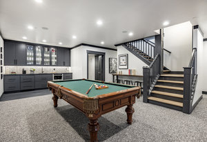 Upstairs, a bright landing with built-ins and an office nook leads to two private retreats: a spacious primary suite with a fireplace and seating area, and a guest bedroom with an ensuite bath. The lower level is designed for gathering, with a family room, wet bar, pool table, and a state-of-the-art movie theater. A covered patio with a hot tub, a spacious bunk room, and another ensuite guest bedroom complete the space. Five of the six bedrooms include ensuite bathrooms, three featuring luxurious stand-alone tubs. Generous decks and balconies offer easy indoor-outdoor living. Two laundry rooms, a three-car garage, and a heated driveway ensure comfort and convenience year-round.