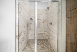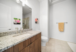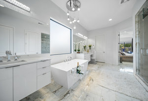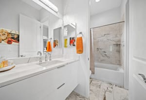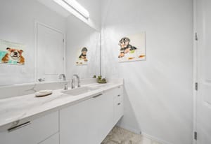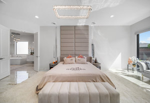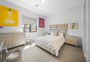 The luxurious primary suite offers a private retreat with custom closets, dual vanities, refined fixtures, and a freestanding soaking tub. Guests enjoy exceptional privacy in the separate casita.