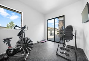 Car enthusiasts will appreciate the 42-foot air-conditioned RV garage with space for multiple vehicles, in addition to an 8-car garage capacity.
