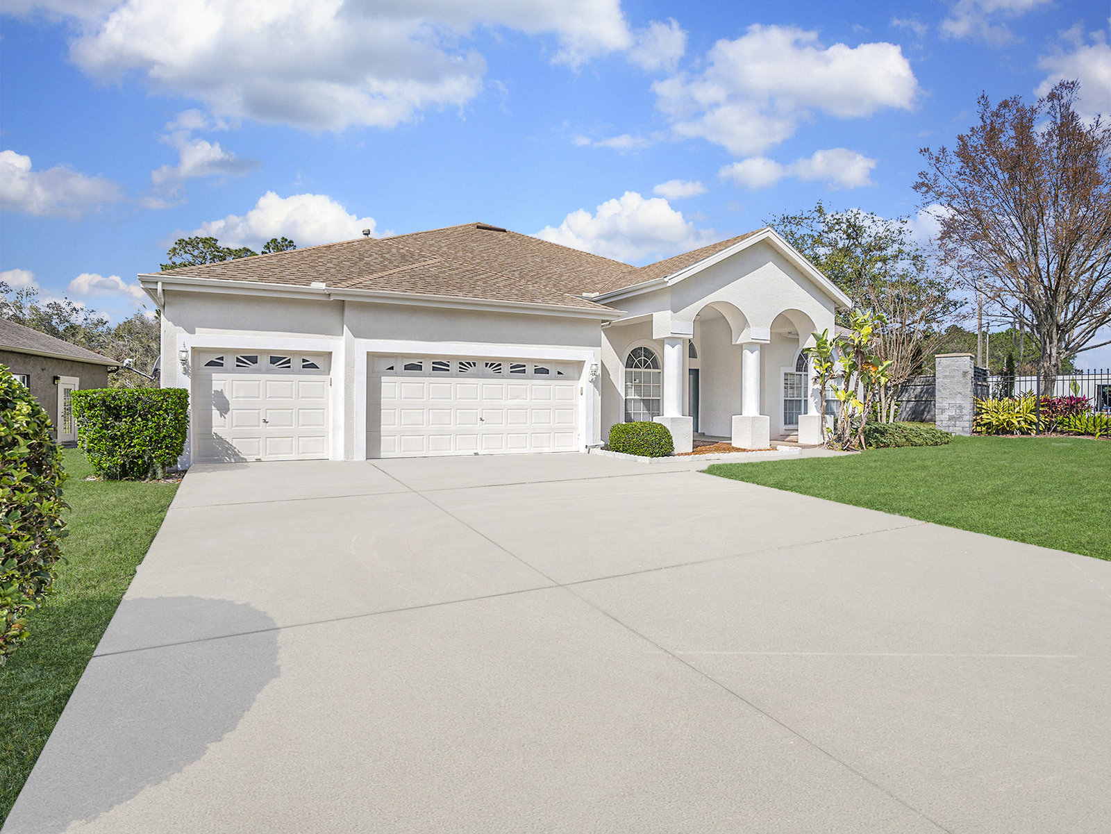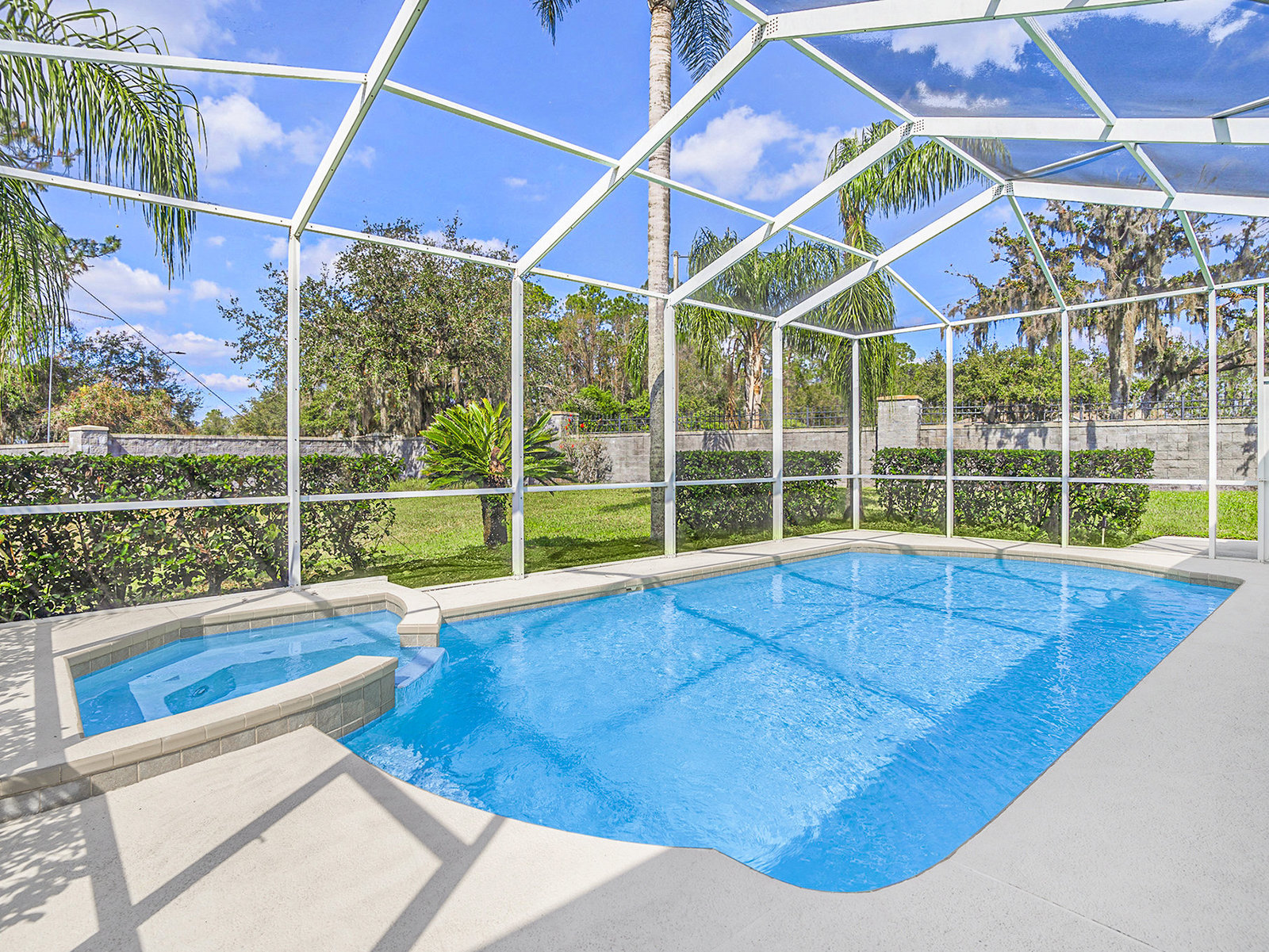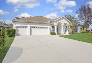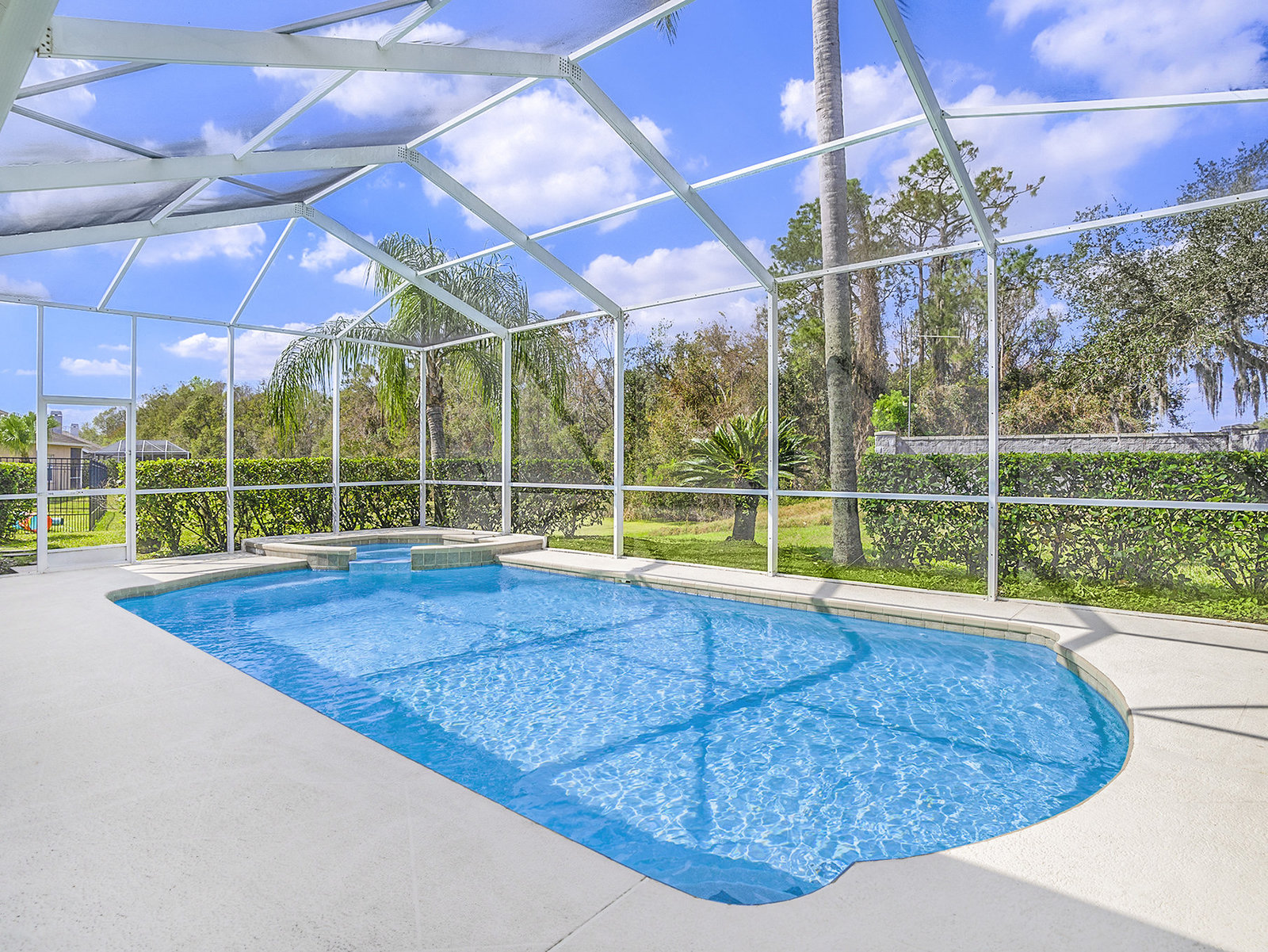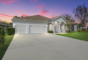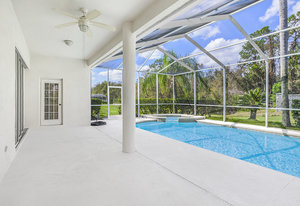 Nestled in the heart of a serene *GATED* community in Meadow Pointe, this exquisite residence offers the perfect blend of luxury and comfort, making it an ideal sanctuary for your growing family. As you approach this easterly facing home, the beautifully painted exterior welcomes you, hinting at the warmth within. Step inside to find an enormous eat-in kitchen that is a culinary enthusiast's dream. Complete with a center island, tons of cabinet & counterspace and includes a gas cooktop! All kitchen appliances are included! With ample space to gather and create lasting memories, the open floor plan with high ceilings flows seamlessly into the formal living and dining rooms, inviting you to host family celebrations and cozy dinners alike. Imagine special gatherings which ensure that laughter and conversation fill every corner of your home. Wake up each morning to the peaceful sights and sounds of nature. This stunning property backs onto conservation with a pond view, providing unmatched privacy and tranquility. Relax in your gorgeous gas heated pool and spa year round, where you can unwind after a long day while soaking in the breathtaking views of the pond just beyond your backyard. With four spacious bedrooms and three well-appointed baths, there is room for everyone to enjoy their own personal space. The three-car garage with two garage openers, offers plenty of storage for vehicles and outdoor gear, making it easy to embrace the Florida lifestyle. There is also an oversized driveway with room for six additional vehicles. Rest easy knowing that the Roof (2015), A/C (2018), and Pool/Spa heater (2022) have all been replaced, ensuring peace of mind for years to come. Plus, NO HOA Fees, while still enjoying the benefits of a deed restricted neighborhood. Located in a community renowned for its terrific schools, this home is perfectly positioned for families seeking a nurturing environment. Enjoy various community amenities including a gym, pool, playground, shuffleboard, basketball, racquetball, tennis, and pickleball courts, and so much more! Don’t miss your chance to own a slice of paradise! Schedule your private showing today and step into a life of comfort, luxury, and cherished memories. Your dream home awaits!