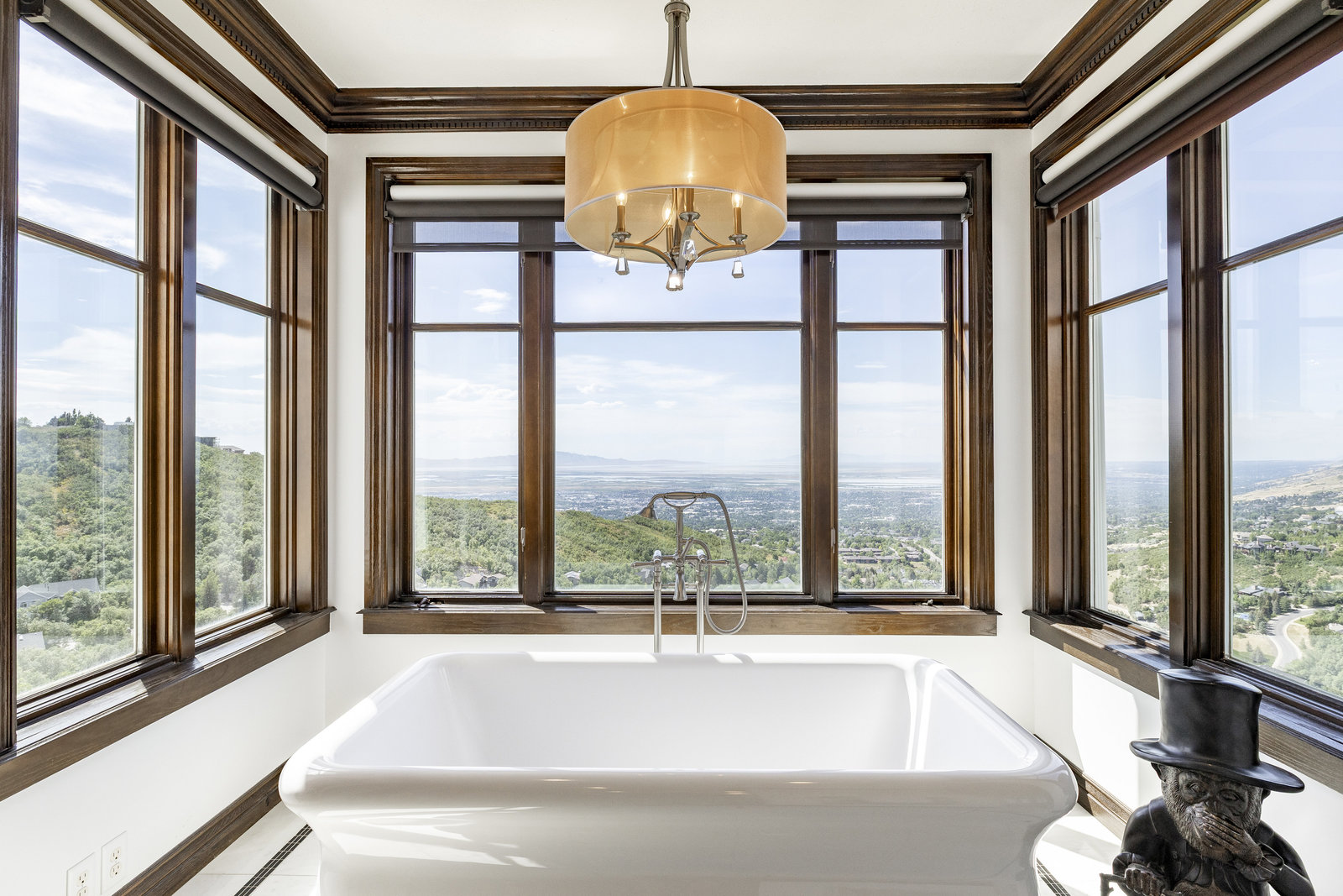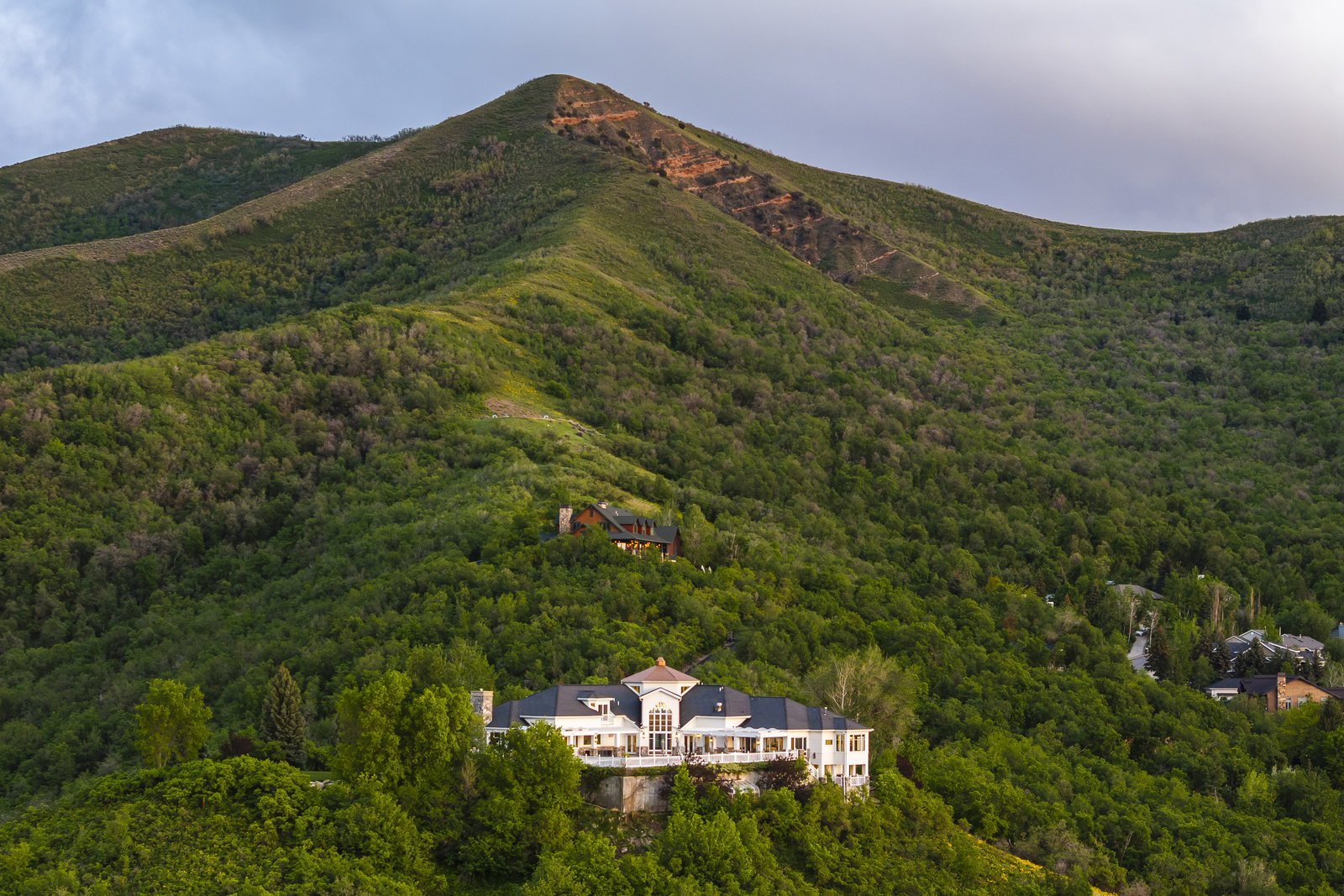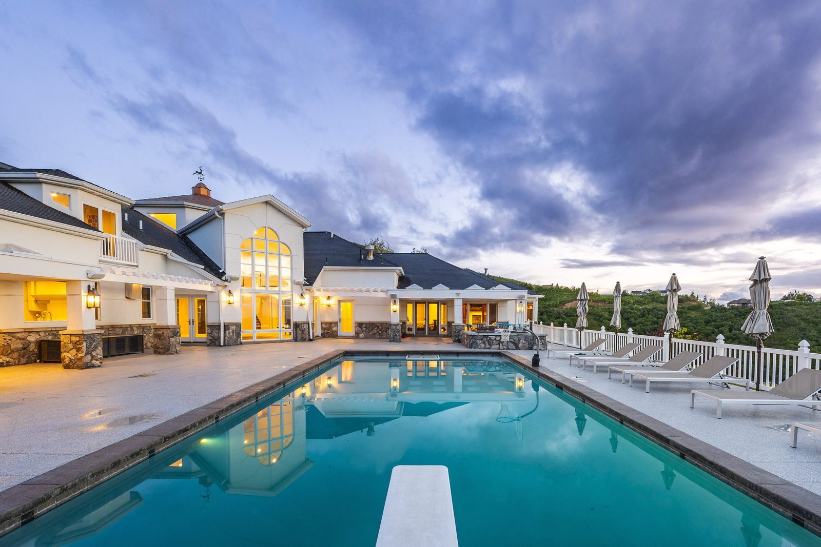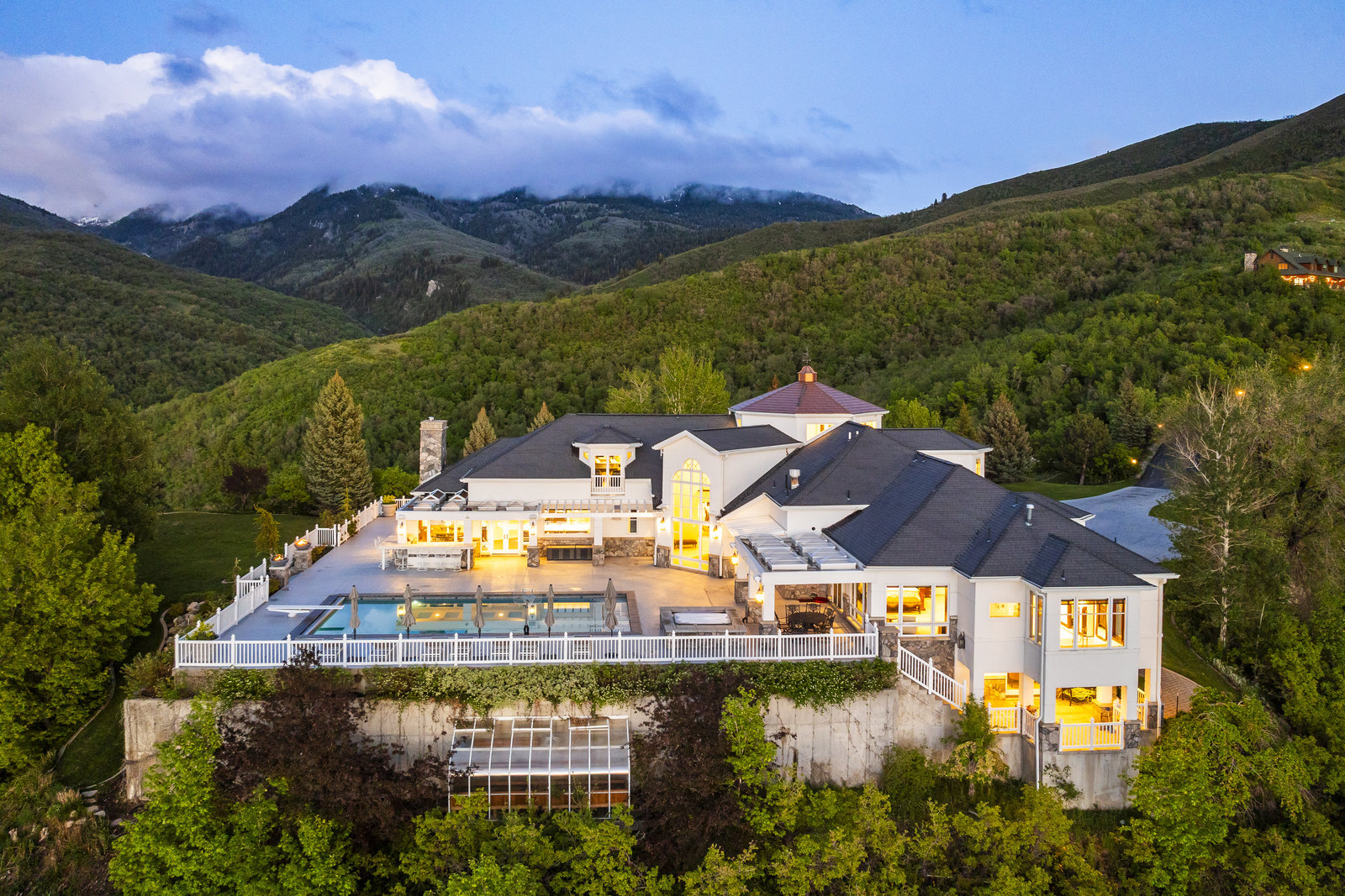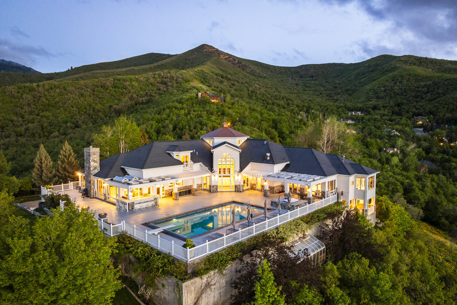 Perched on nearly seven private acres backing protected forest land, this expansive gated estate offers breathtaking panoramic views of the Great Salt Lake, Mueller Park Canyon, and the surrounding mountains. Thoughtfully designed for both grand entertaining and intimate living, the home features five bedrooms, seven bathrooms, and soaring ceilings that frame the stunning natural surroundings. Resort-style outdoor spaces include expansive decks with fire pits, a saltwater pool, in-ground hot tub, koi pond, outdoor kitchen, and lush, mature landscaping. Direct access to hiking and mountain biking trails enhances the estate's connection to nature. Inside, the fully renovated chef's kitchen boasts Wolf appliances and a butler's pantry, while the main-level primary suite offers his-and-hers dressing rooms, a spa-like bath, dry sauna, and steam shower. Additional highlights include a formal living and dining room, executive office, walk-out lower level, and an indoor basketball court. The six-car garage with a workshop provides ample space for vehicles, storage and projects. With the option to subdivide an additional building lot, this estate presents a rare opportunity for expansion of all kinds. Just 20 minutes from the growing vibrancy of downtown Salt Lake City and 45 minutes from world class skiing at Snowbasin, this is a once-in-a-lifetime offering of luxury, privacy with a lifestyle that is truly unmatched.