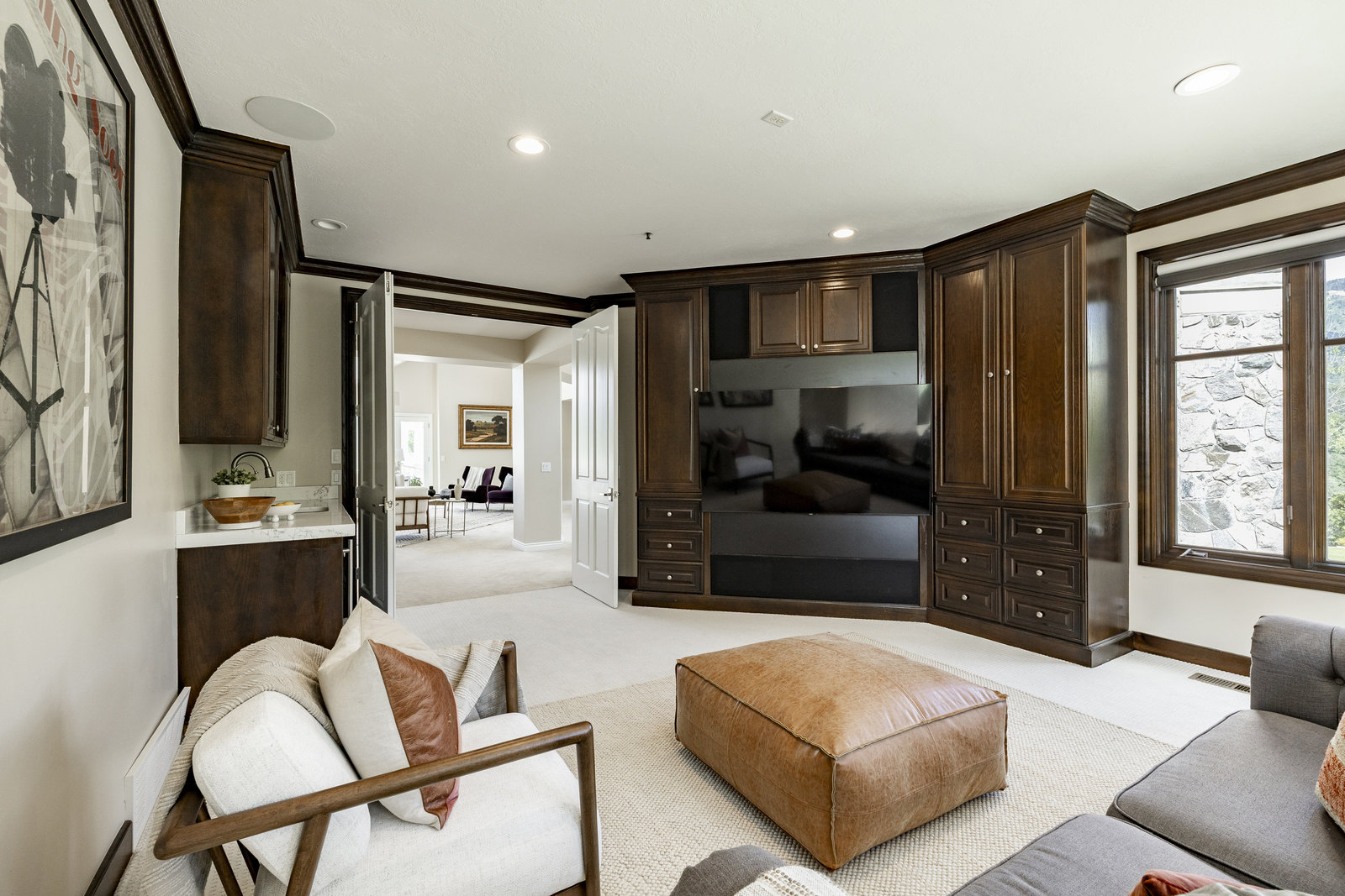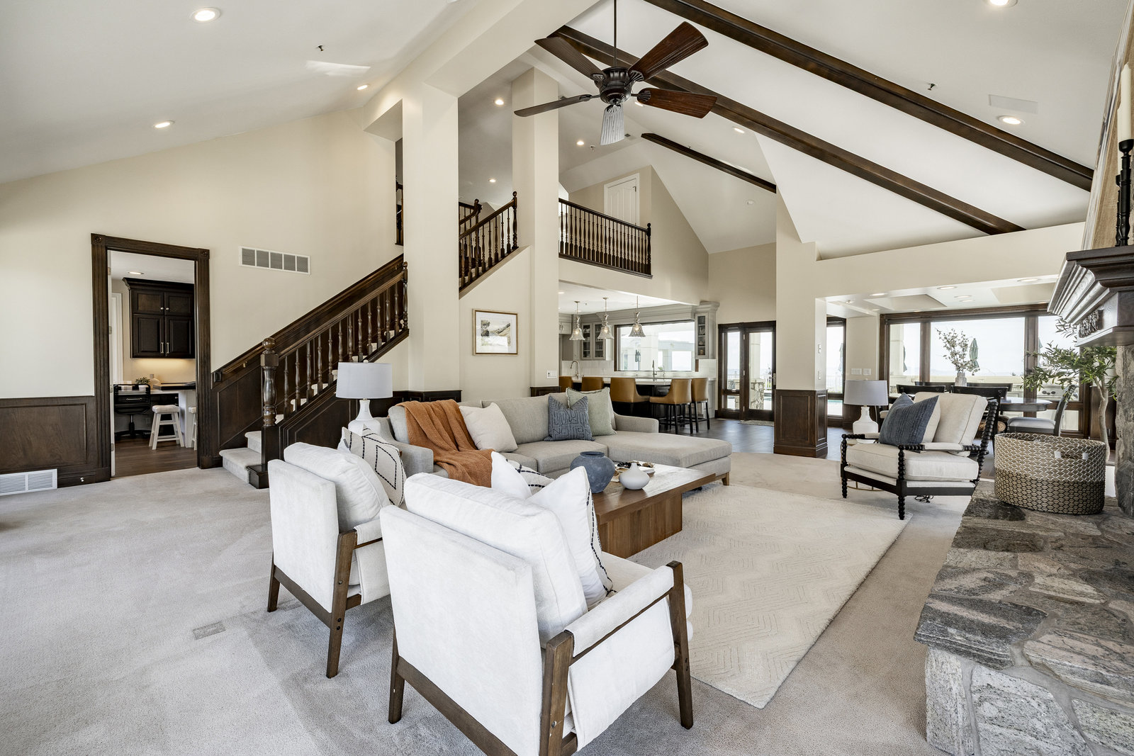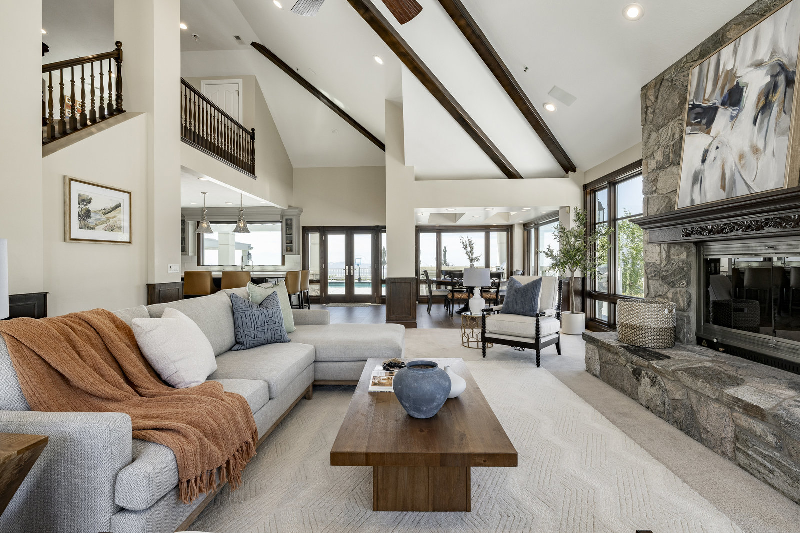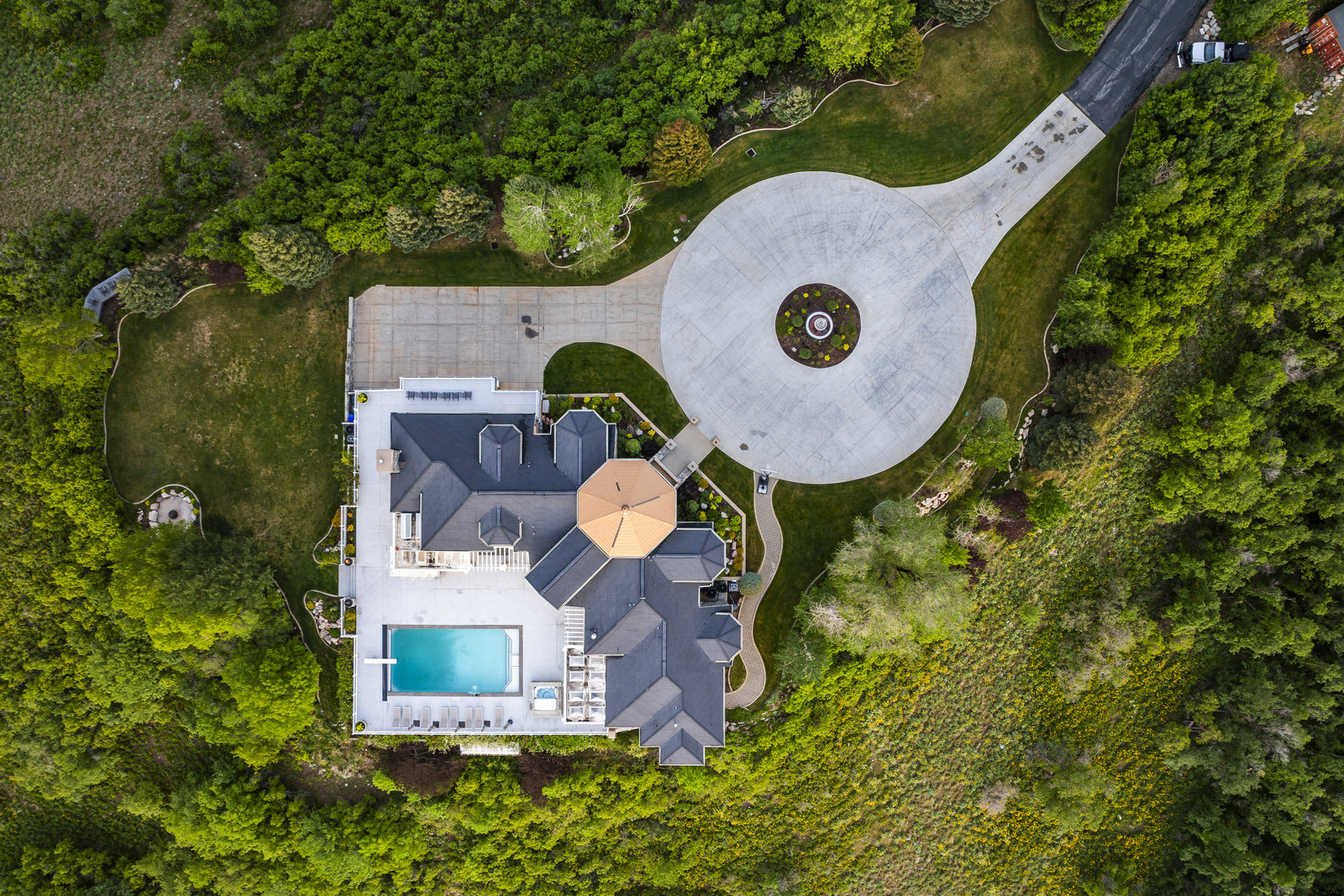 Perched on nearly seven private acres backing protected forest land, this expansive gated estate offers breathtaking panoramic views of the Great Salt Lake, Mueller Park Canyon, and the surrounding mountains. Thoughtfully designed for both grand entertaining and intimate living, the home features five bedrooms, seven bathrooms, and soaring ceilings that frame the stunning natural surroundings. Resort-style outdoor spaces include expansive decks with fire pits, a saltwater pool, in-ground hot tub, koi pond, outdoor kitchen, and lush, mature landscaping. Direct access to hiking and mountain biking trails enhances the estate's connection to nature. Inside, the fully renovated chef's kitchen boasts Wolf appliances and a butler's pantry, while the main-level primary suite offers his-and-hers dressing rooms, a spa-like bath, dry sauna, and steam shower. Additional highlights include a formal living and dining room, executive office, walk-out lower level, and an indoor basketball court. The six-car garage with a workshop provides ample space for vehicles, storage and projects. With the option to subdivide an additional building lot, this estate presents a rare opportunity for expansion of all kinds. Just 20 minutes from the growing vibrancy of downtown Salt Lake City and 45 minutes from world class skiing at Snowbasin, this is a once-in-a-lifetime offering of luxury, privacy with a lifestyle that is truly unmatched.