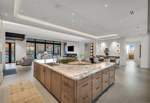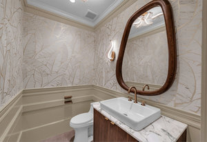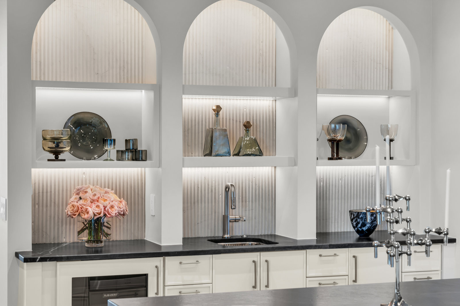 Crafted with meticulous detail, the home features a gourmet kitchen that is a chef's dream, complete with Wolf Sub-Zero appliances, two ovens, two steam ovens, induction cooktop, two Rohl sinks, built-in banquette, walnut cabinetry, and a large working butler's pantry. Two wet bars make entertaining effortless, while thoughtful design elements elevate every space.
