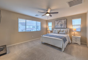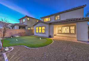 Experience luxurious living in the highly desirable gated community of The Cove within the prestigious master-planned community of Southern Highlands! This stunning 2,389 sq ft home, situated on a 4,356 sq ft lot, offers the perfect blend of elegance and comfort. Inside, discover 3 bedrooms, 3 bathrooms, a dedicated downstairs office ideal for remote work, and an upstairs loft perfect for entertainment. A 2-car garage provides convenient parking. Step outside to a meticulously manicured golf putting green surrounded by lush landscaping! This home boasts over $18,000 in upgrades, including a water filtering system, stylish ceiling fans, a premium sound system, upgraded light fixtures, and ...