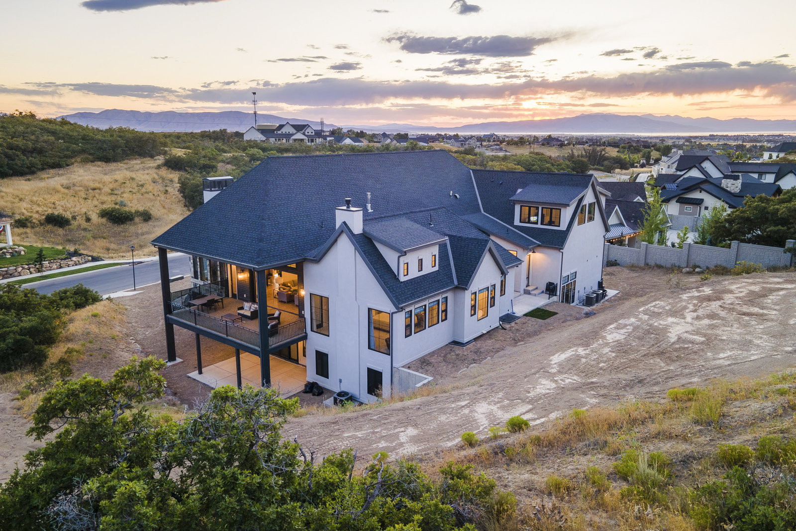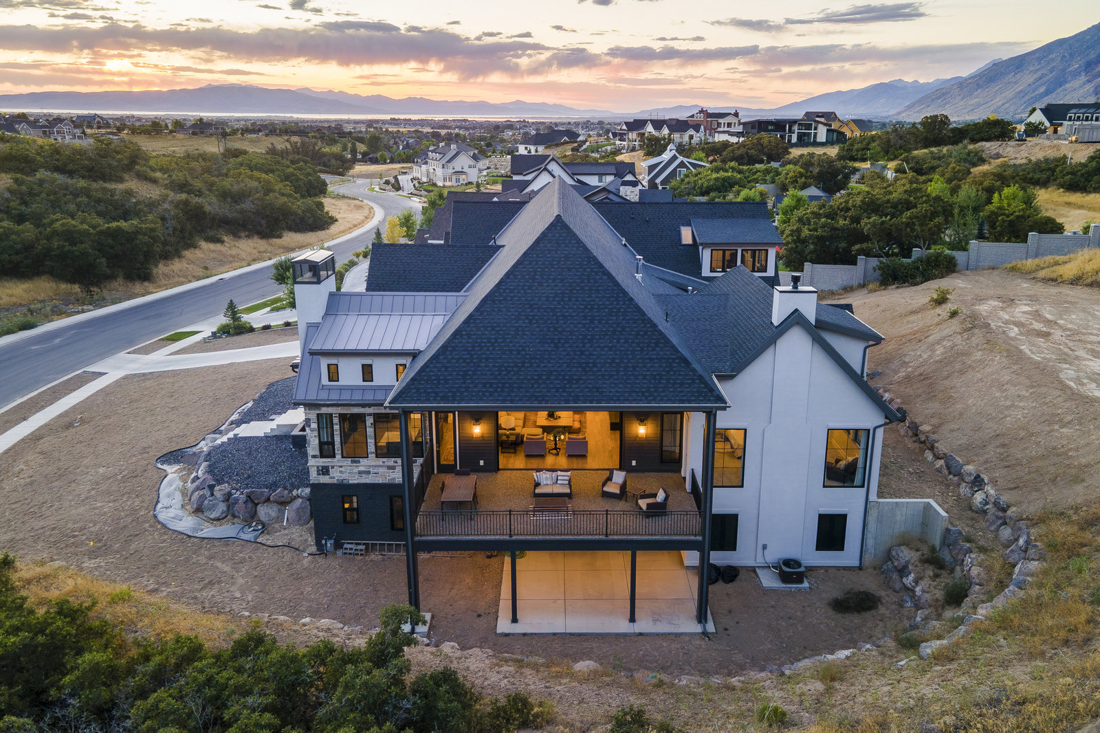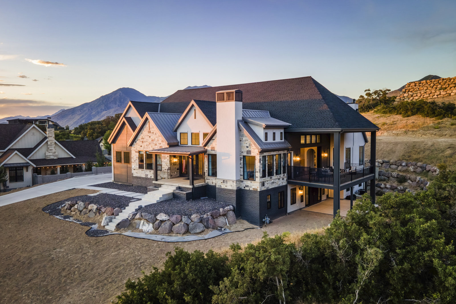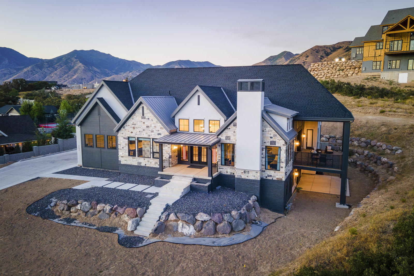 Completed in 2023, this expansive 9,010 sq ft masterpiece in the Twin Hollows Neighborhood of Mapleton offers an exceptional living experience with 6 spacious bedrooms, 6 bathrooms, and ample space for both family and guests. The open-concept design is perfect for entertaining. It boasts 3 large gathering areas, a den, and multi-slide doors that disappear into the wall and seamlessly connect the indoor and outdoor spaces. The huge deck offers breathtaking mountain views, while the daylight walkout basement is a standout feature providing easy access to the outdoor space. The heart of the home is the chef’s kitchen which consists of two islands, a bakers kitchen, and top-of-the-line Italian Bertazzoni appliances, including double ovens and a 6-burner stovetop with a grill. The master suite is designed to pamper, with vaulted ceilings and a large bathroom with heated natural stone flooring and closet. The lower level has a fantastic theater room with a 192" diagonal screen for the ultimate cinematic experience. Adjacent to the theater is a wet bar, craft room, and a large great room ideal for entertaining. Stay active and fit in a fun exercise room with glass walls, and enjoy the convenience of 2 laundry rooms within the home. The home is also equipped with three furnaces and AC units, and argon-filled aluminum windows and doors by Doorwin. The oversized garage can accommodate up to 5 vehicles, and as an added bonus there is a hair salon with an exterior entrance that could be converted into a guest apartment. This is truly an extraordinary property—don’t miss your chance to make it yours!