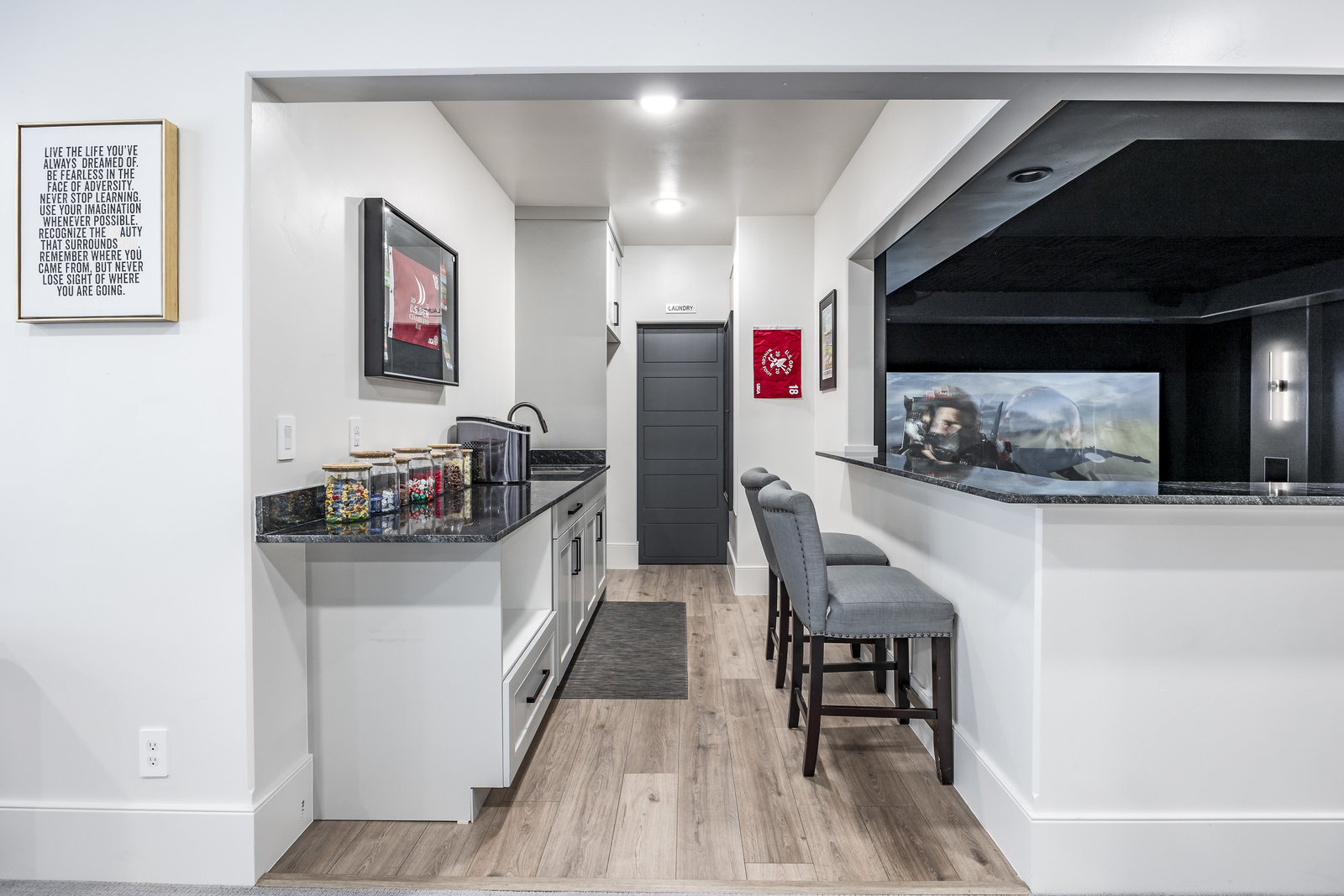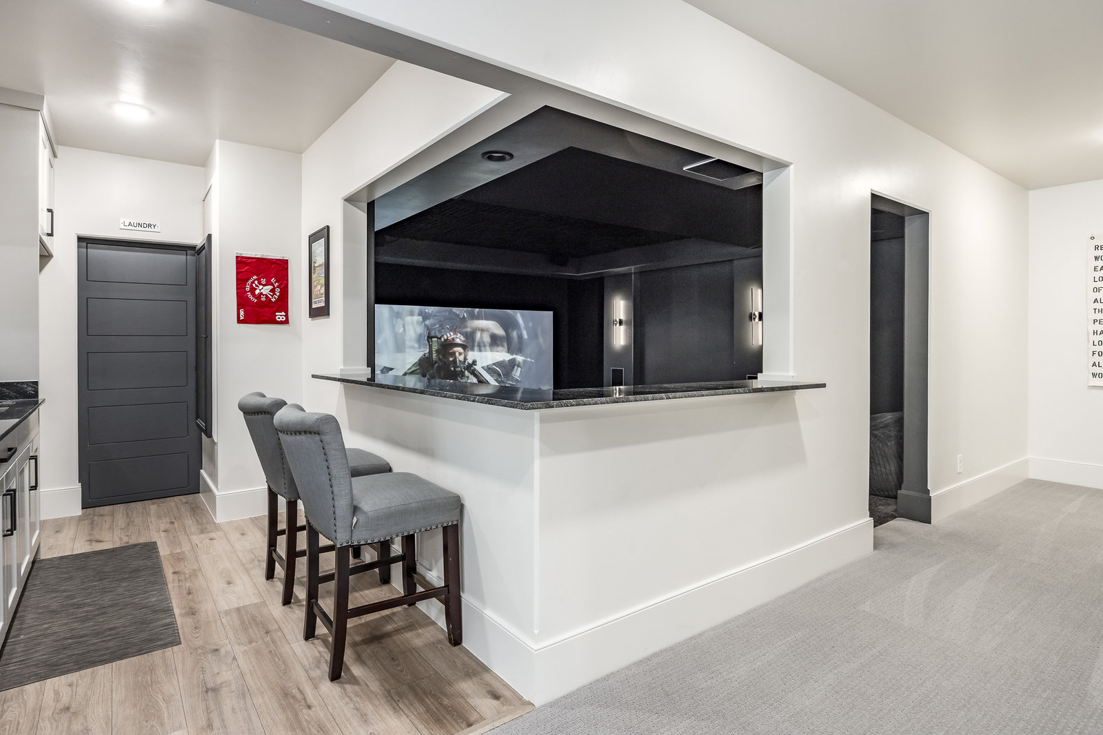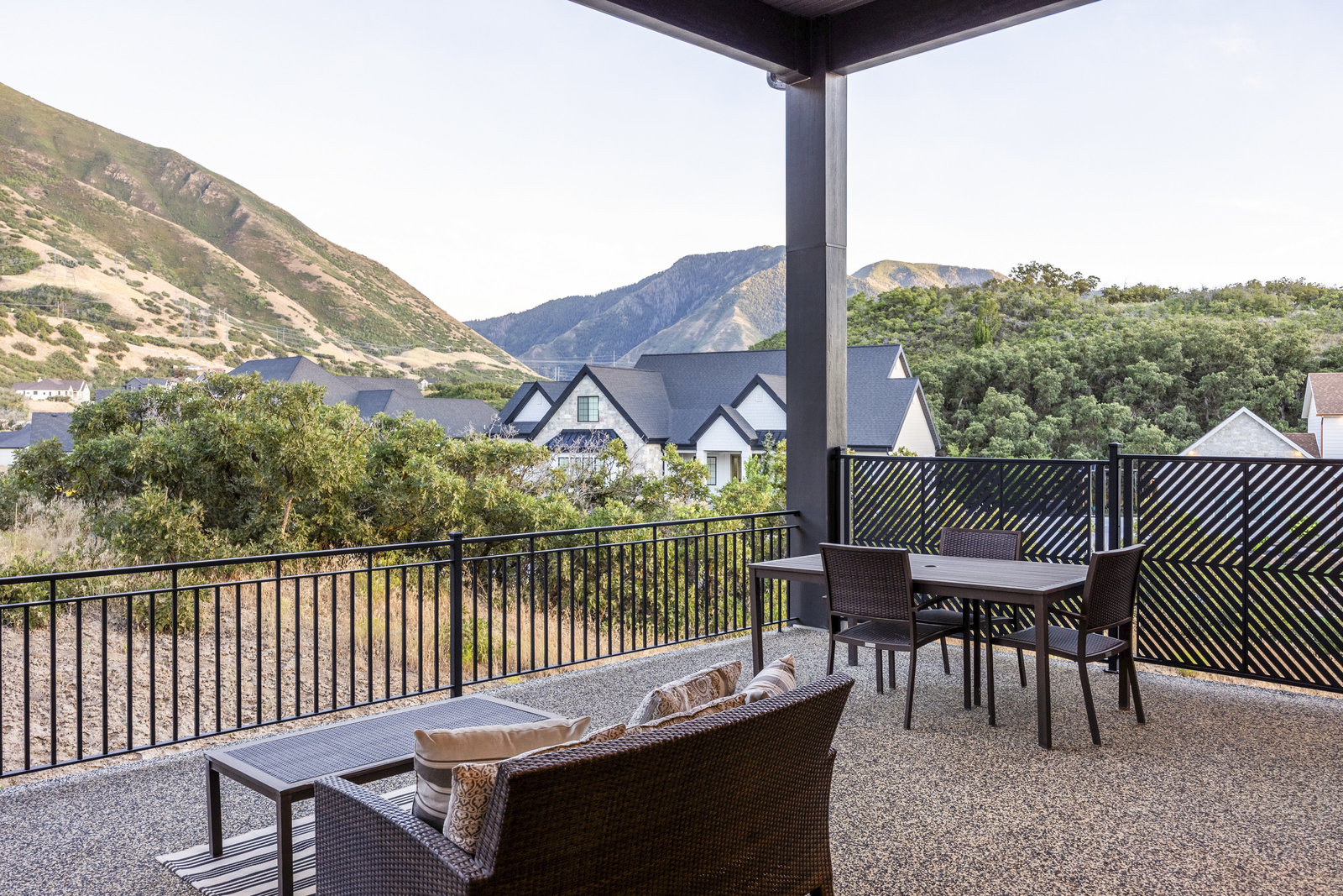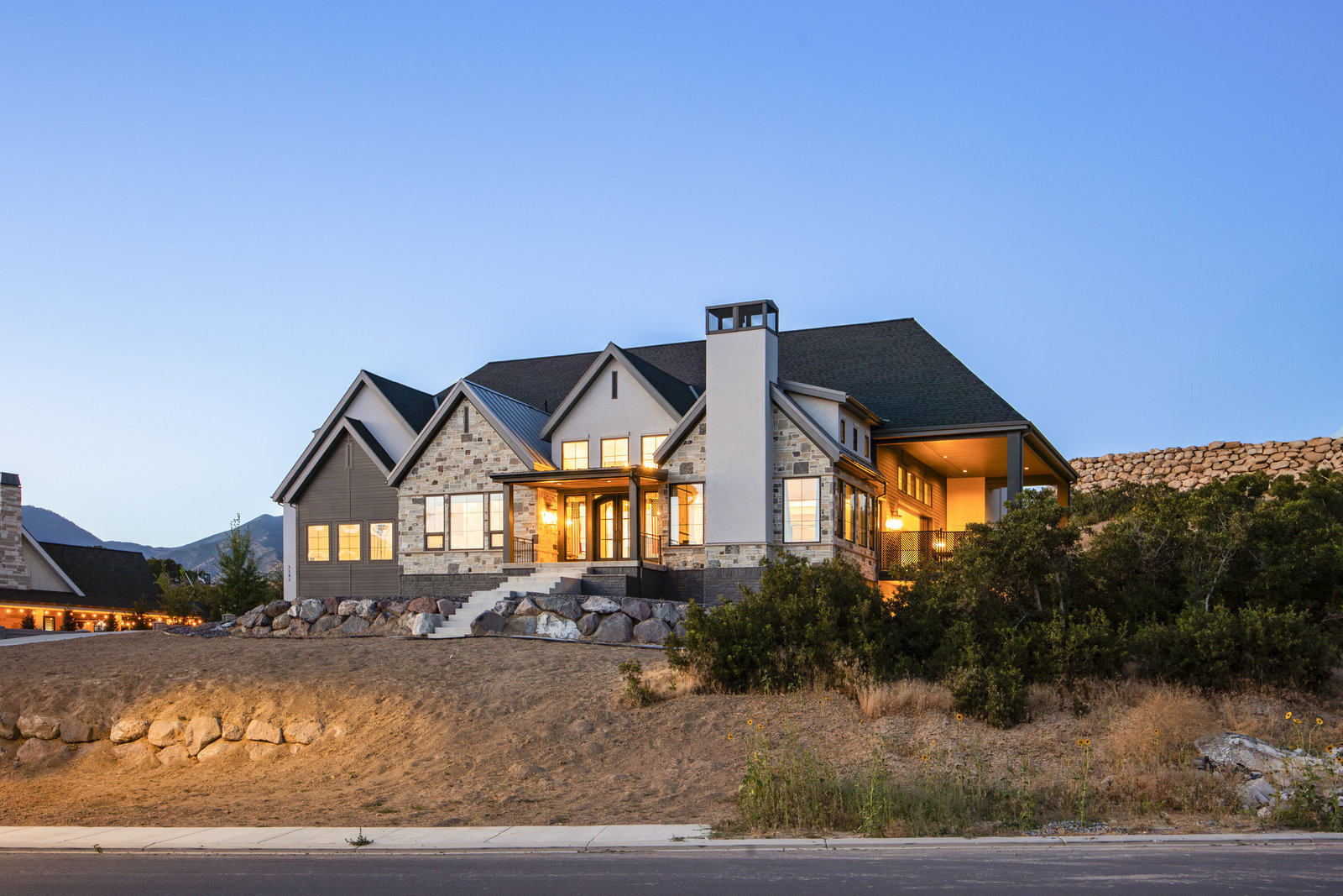 Completed in 2023, this expansive 9,010 sq ft masterpiece in the Twin Hollows Neighborhood of Mapleton offers an exceptional living experience with 6 spacious bedrooms, 6 bathrooms, and ample space for both family and guests. The open-concept design is perfect for entertaining. It boasts 3 large gathering areas, a den, and multi-slide doors that disappear into the wall and seamlessly connect the indoor and outdoor spaces. The huge deck offers breathtaking mountain views, while the daylight walkout basement is a standout feature providing easy access to the outdoor space. The heart of the home is the chef’s kitchen which consists of two islands, a bakers kitchen, and top-of-the-line Italian Bertazzoni appliances, including double ovens and a 6-burner stovetop with a grill. The master suite is designed to pamper, with vaulted ceilings and a large bathroom with heated natural stone flooring and closet. The lower level has a fantastic theater room with a 192" diagonal screen for the ultimate cinematic experience. Adjacent to the theater is a wet bar, craft room, and a large great room ideal for entertaining. Stay active and fit in a fun exercise room with glass walls, and enjoy the convenience of 2 laundry rooms within the home. The home is also equipped with three furnaces and AC units, and argon-filled aluminum windows and doors by Doorwin. The oversized garage can accommodate up to 5 vehicles, and as an added bonus there is a hair salon with an exterior entrance that could be converted into a guest apartment. This is truly an extraordinary property—don’t miss your chance to make it yours!