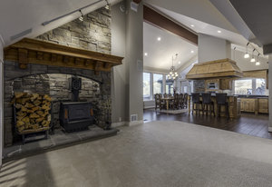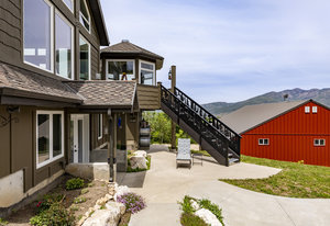 The master suite offers two private decks, a double-sided fireplace, soaking tub, and sauna-a perfect retreat after a long day outdoors. Downstairs, a full guest quarters includes its own kitchen, laundry, two bedrooms and garage-ideal for visitors, rental income, or a caretaker.