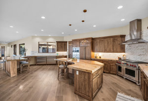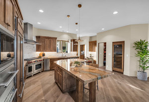 The gourmet kitchen is a chef's dream, featuring Subzero and Wolf appliances, Subzero wine fridge, pebble ice machine, new cold drawers, perfect for preparing meals for family or entertaining guests. Gorgeous hardwood flooring throughout the home adds warmth & sophistication, while large windows ...
