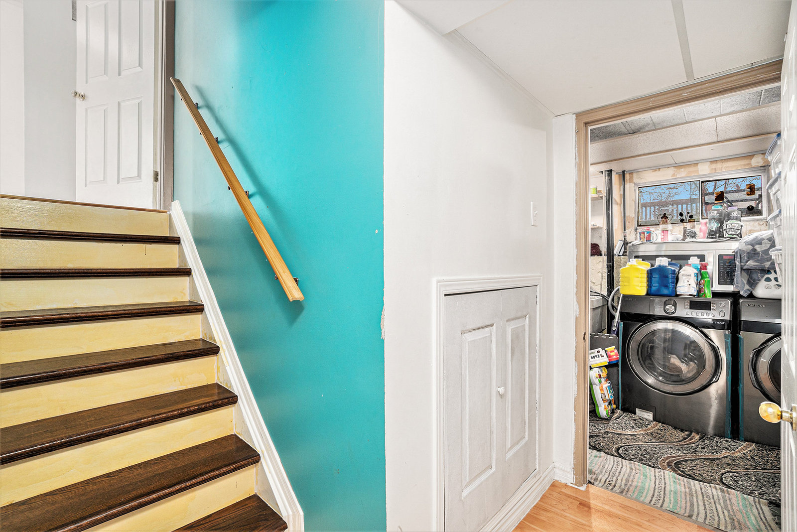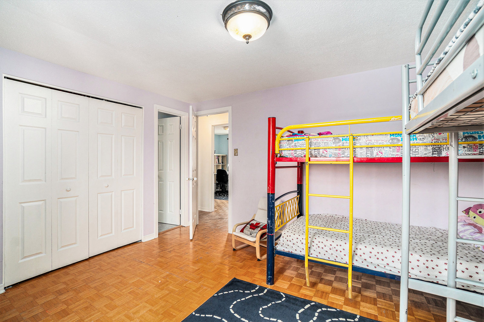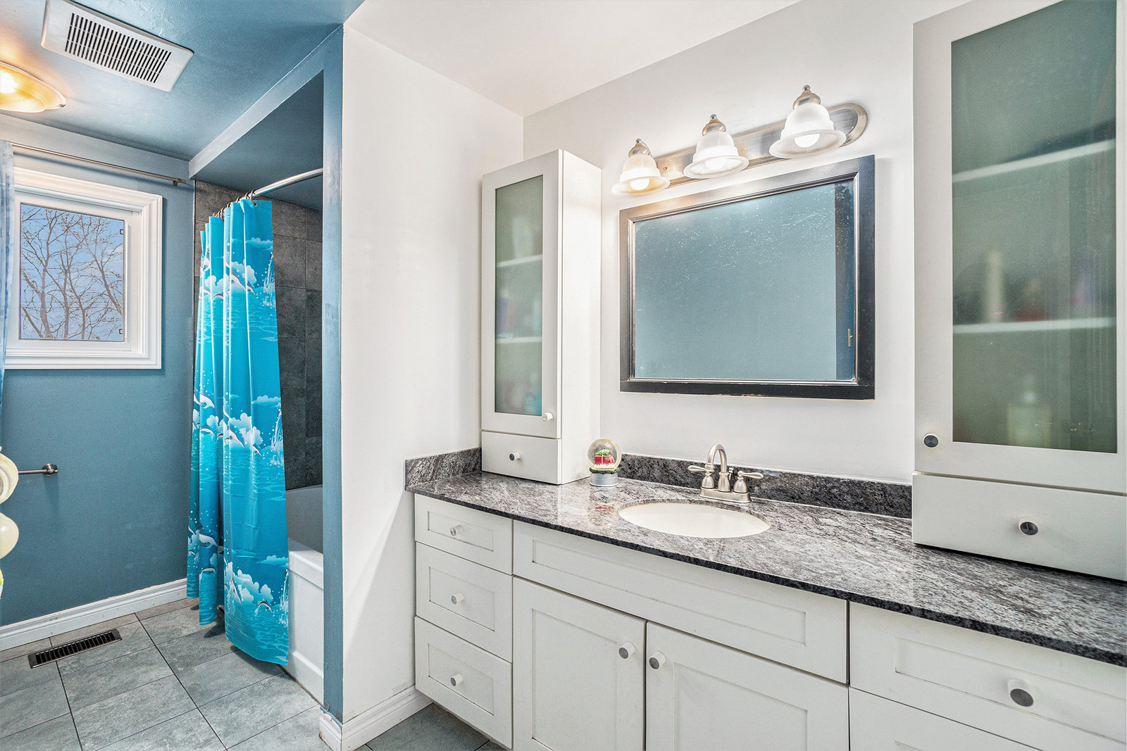 The second floor features three generously sized bedrooms, each offering ample closet space. The primary bedroom comes with convenient cheater access to the updated full bathroom, which boasts modern ceramic finishes.
