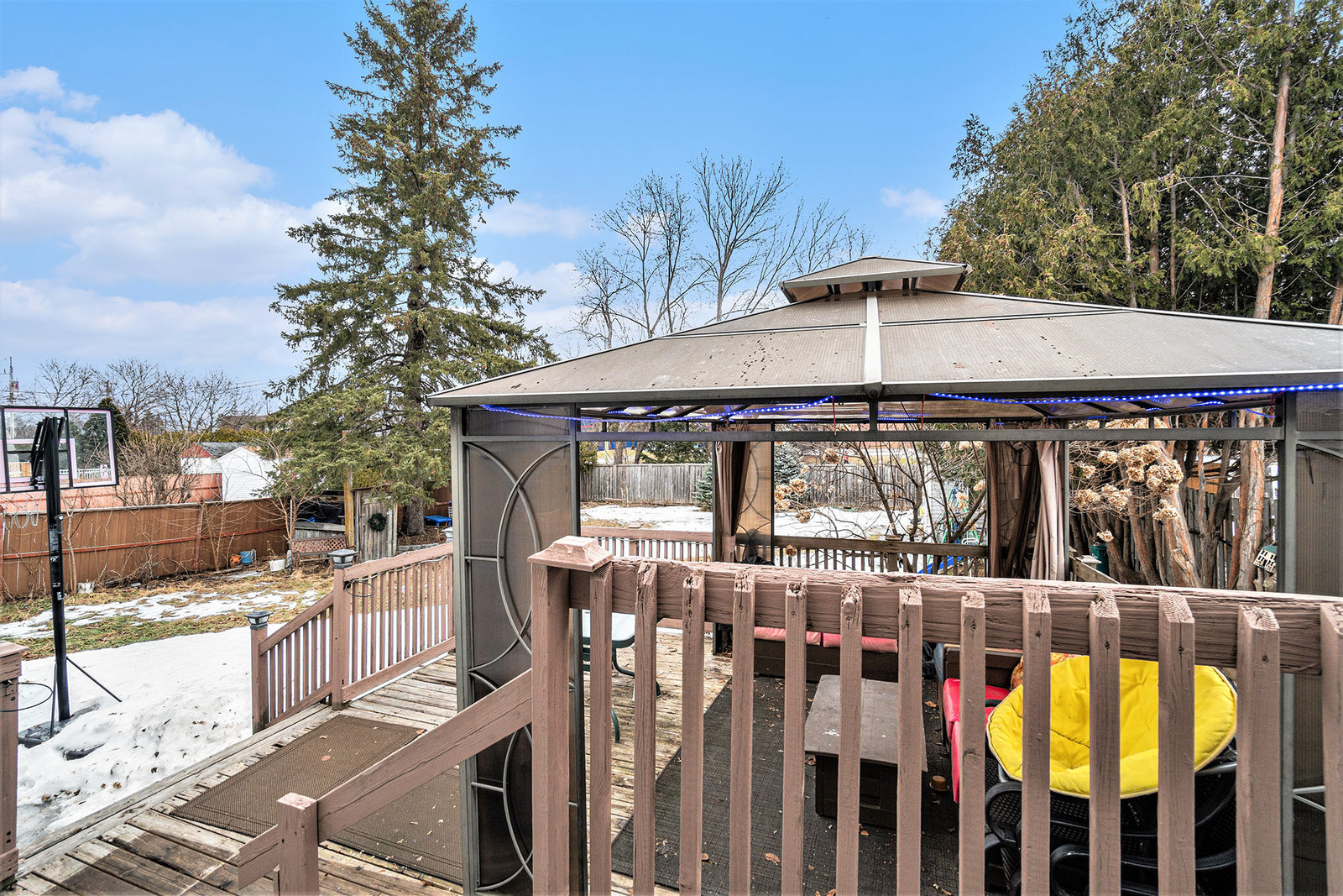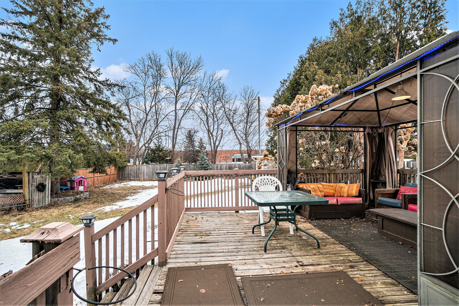 Step inside to discover a spacious and inviting main floor, featuring a bright living room with large windows that allow natural light to pour in. Adjacent to the living area, you'll find a formal dining space, perfect for hosting family gatherings or entertaining guests. The kitchen offers plenty of potential and is equipped with sliding patio doors that lead to a covered gazebo and an expansive backyard—an excellent space for outdoor relaxation, gardening, or summer barbecues.
