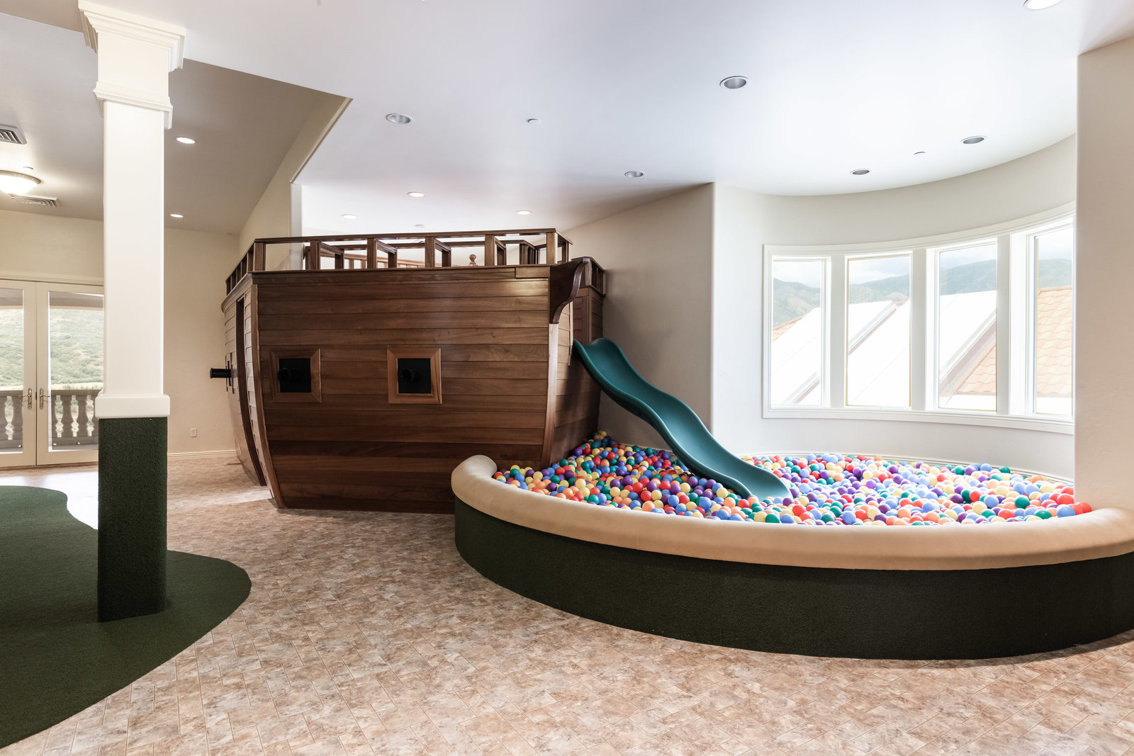 MASSIVE PRICE REDUCTION! Don't wait any longer. This is your chance to get the best deal in Utah. Located at the end of Hobble Creek Canyon, this expansive estate is one of the largest private residences in the country. Covering 50,738 square feet on 150 acres, it offers complete privacy and sweeping views of Utah's Wasatch Mountains. The grand entryway features 20-foot ceilings, a statement chandelier, and dual staircases leading to the main living spaces. Floor-to-ceiling windows in the formal living room highlight the surrounding mountains. The home includes a spacious master suite and five well-appointed guest suites, all designed with high-end finishes. The estate is built for both luxury and recreation. A massive indoor pool complex includes a waterslide, waterfall, lazy river, rope swing, hot tub, and a children's area, along with an outdoor kitchen. Additional amenities include a basketball court, two-lane bowling alley, a 27-seat theater, sauna, fitness center, game room, and a dedicated children's playroom. A designated area for a private shooting range is also on the property. The 156 acres offer opportunities for horseback riding, with space for stables and trails. Outdoor activities include golfing at a nearby top-rated course, hiking, mountain biking, ATV riding, hunting, snowmobiling, and cross-country skiing. While secluded, the property remains accessible-just 35 minutes from a private airport and about an hour from Salt Lake City. Whether used as a primary home, vacation retreat, or corporate getaway, this estate is a rare opportunity to own one of the most amazing properties in Utah.