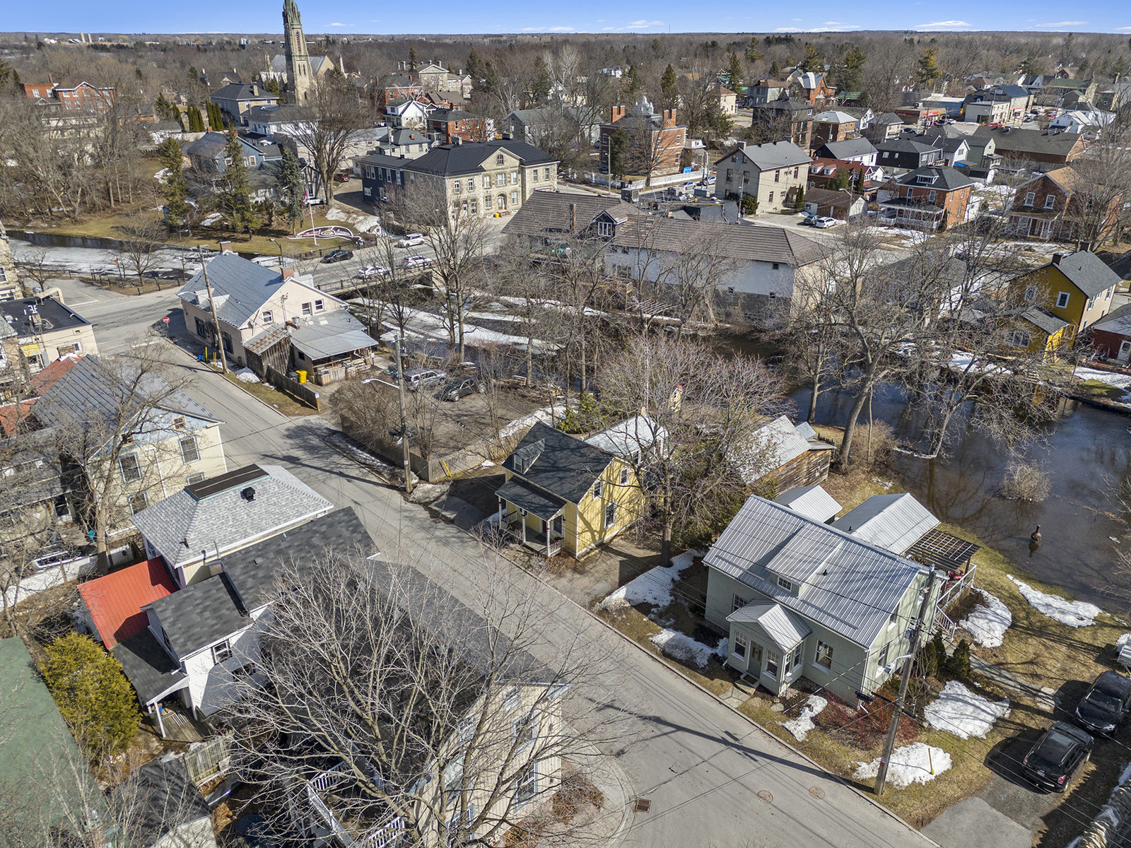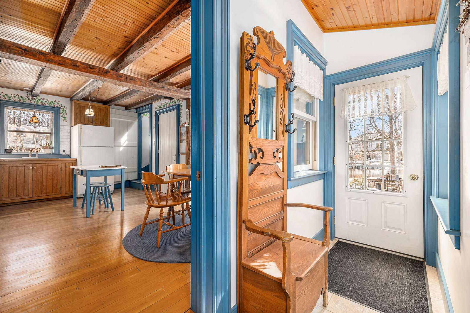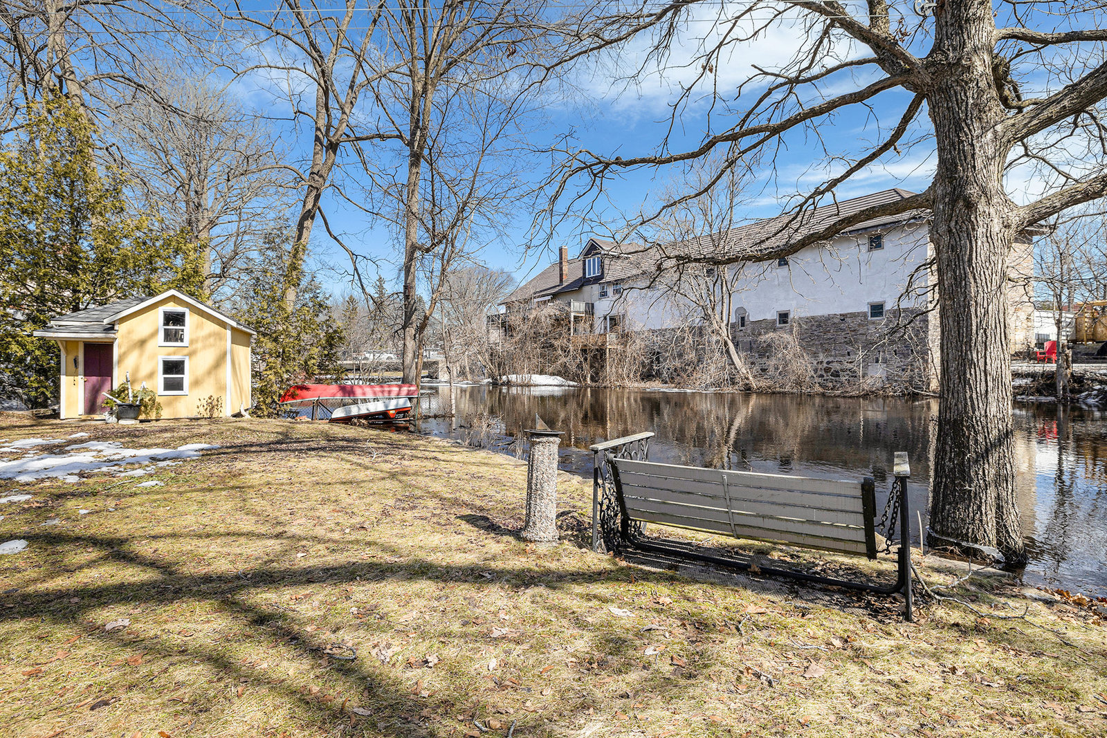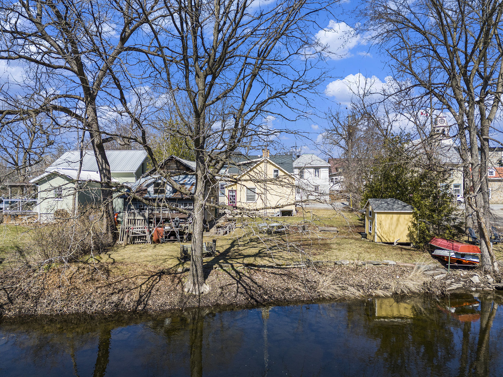 Imagine living within steps of all that downtown Heritage & Heart Perth has to offer, on your very own beautiful riverfront lot! Thought to be one of Perth's most photographed houses, was also featured in the Christmas house tour and was loved by all 800 people who attended. The Tay Navigation Company had originally built a small stone building on the property in 1820. Remains of its stone foundation can still be found on the property & is believed to be part of the foundation under the kitchen. The current home was built around 1840 and still highlights much of the original heritage and charm of that time period but has been sensitively renovated over the years to enjoy modern amenities. The current owners have enjoyed this home and property for 47 years! Features of this lovely 1 1/2 storey home include original pine floors & warming gas fireplace in living room, with a den & powder room just off front foyer. The large country sized kitchen, with open beamed ceiling, provides plenty of cabinet & counter space, walk-in pantry, back stair case to upper level and side door access in from heated four season porch. Completing the upper level you will find laundry, a small desk/sewing nook, 2 good sized bedrooms, each with painted pine floors & built-in closet space, 3 piece bathroom with claw foot tub & custom pine vanity and a generous sized primary bedroom with loads of storage/closet space & back stairs access to the kitchen. The property is ...