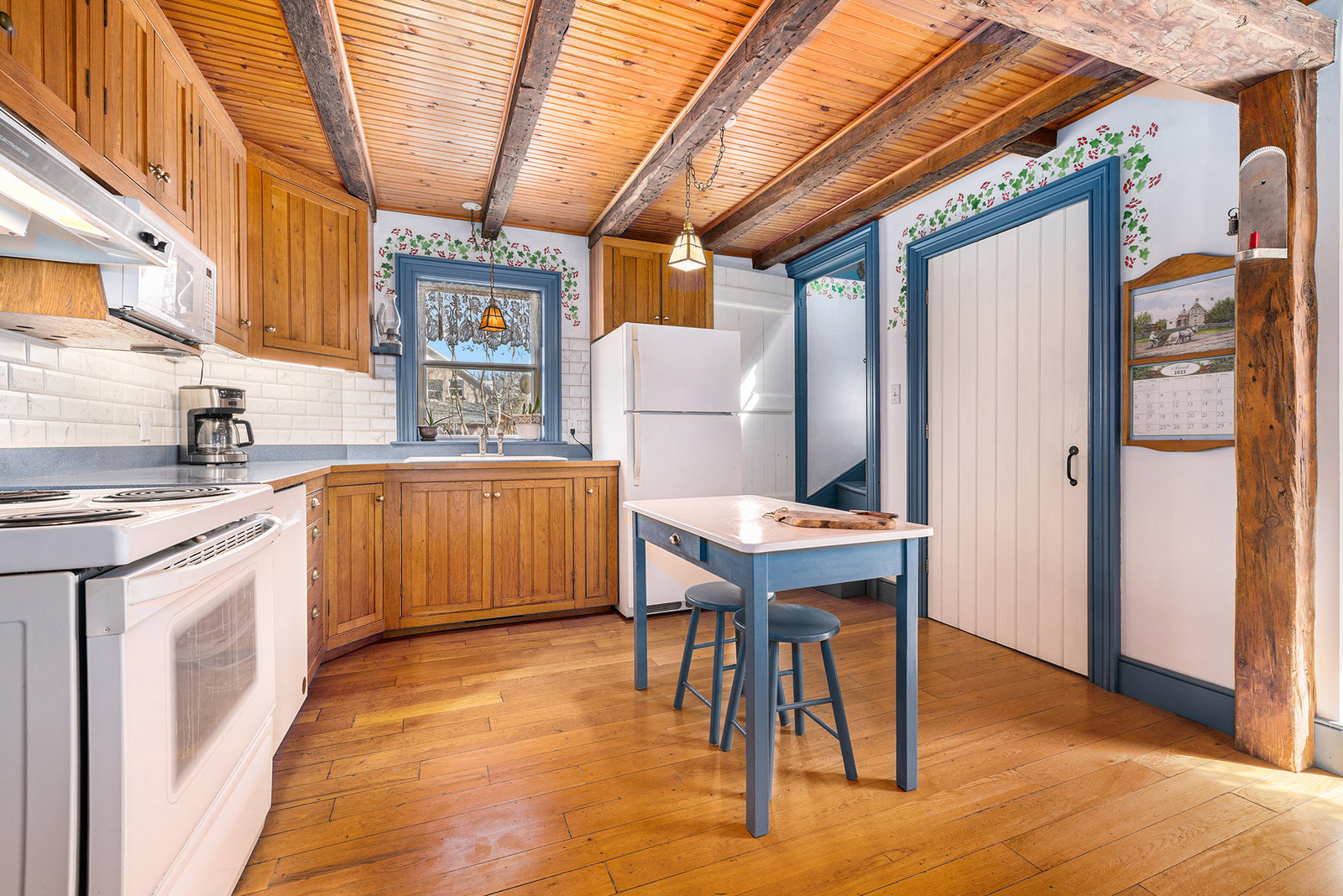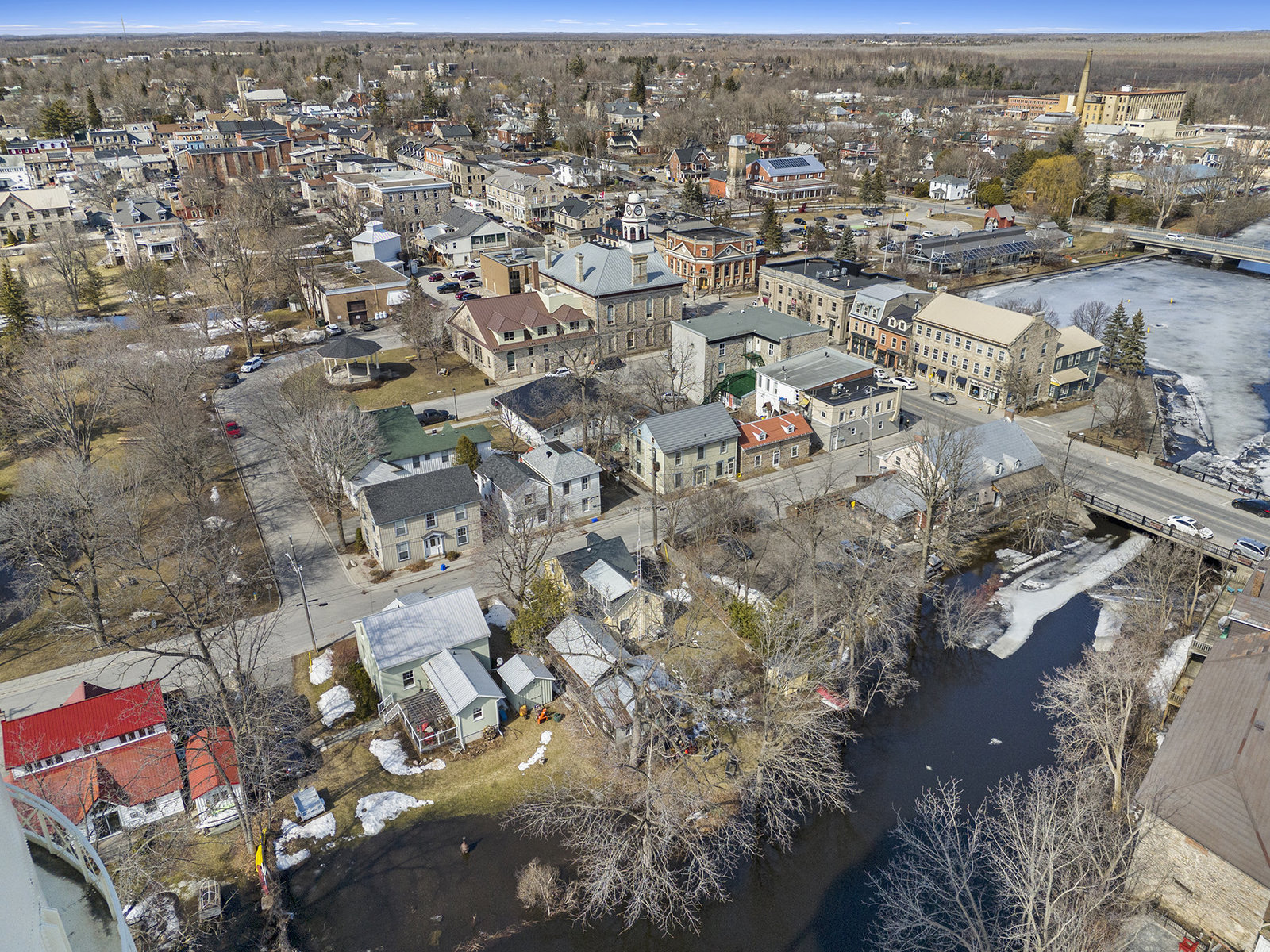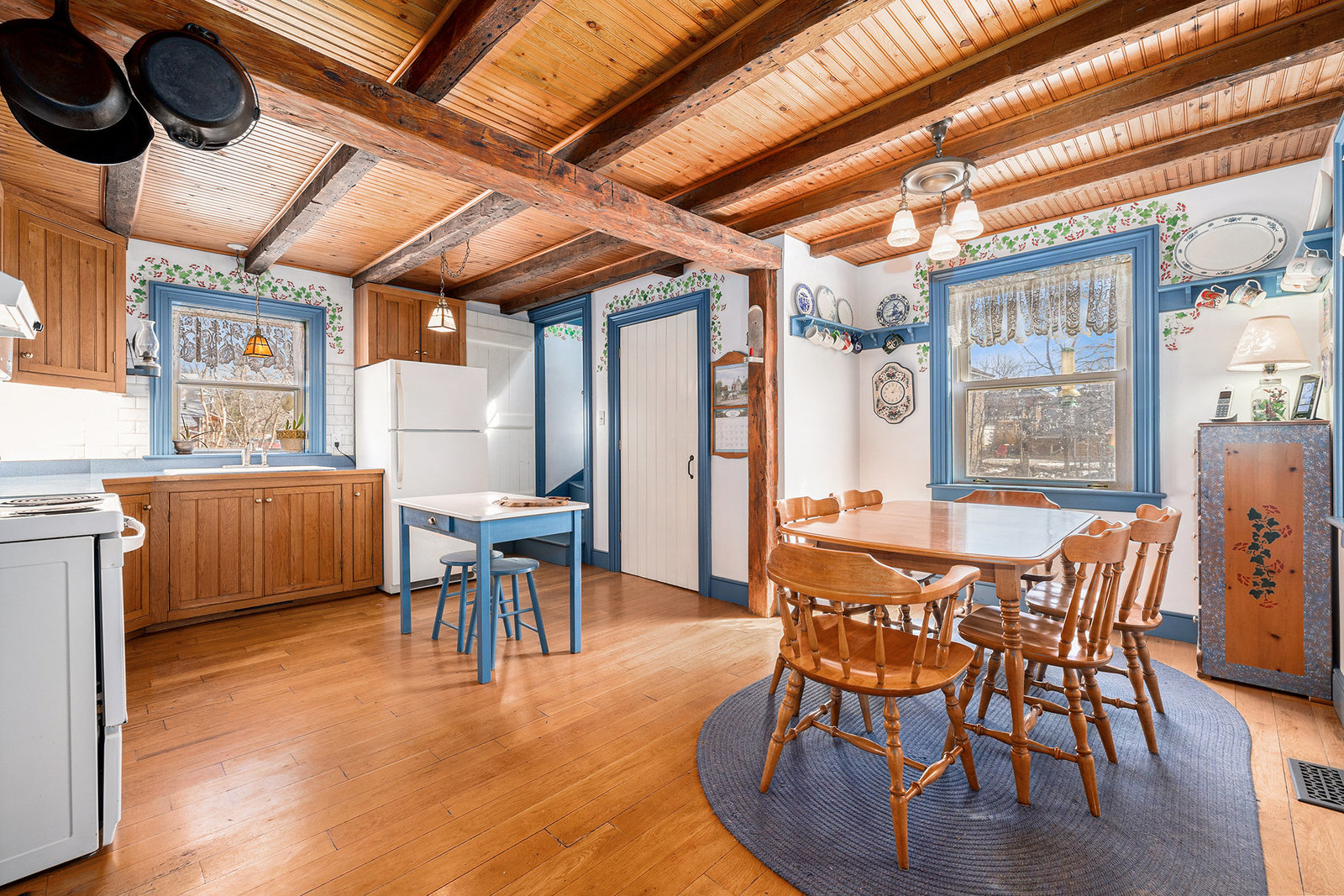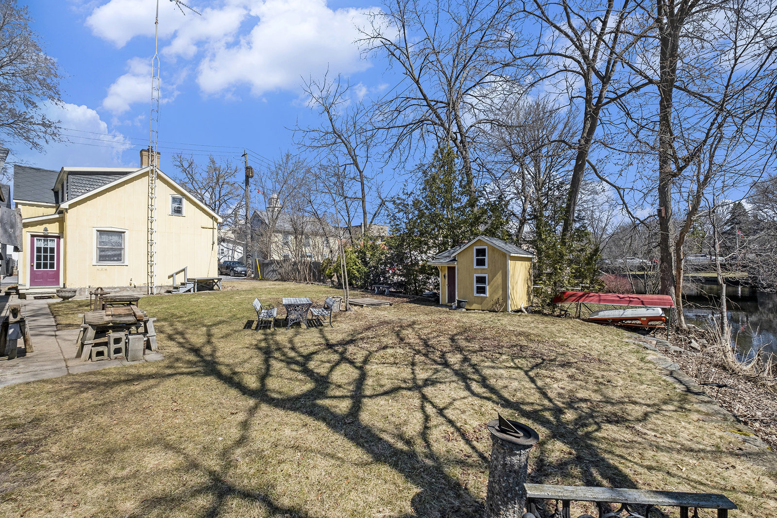 Imagine living within steps of all that downtown Heritage & Heart Perth has to offer, on your very own beautiful riverfront lot! Thought to be one of Perth's most photographed houses, was also featured in the Christmas house tour and was loved by all 800 people who attended. The Tay Navigation Company had originally built a small stone building on the property in 1820. Remains of its stone foundation can still be found on the property & is believed to be part of the foundation under the kitchen. The current home was built around 1840 and still highlights much of the original heritage and charm of that time period but has been sensitively renovated over the years to enjoy modern amenities. The current owners have enjoyed this home and property for 47 years! Features of this lovely 1 1/2 storey home include original pine floors & warming gas fireplace in living room, with a den & powder room just off front foyer. The large country sized kitchen, with open beamed ceiling, provides plenty of cabinet & counter space, walk-in pantry, back stair case to upper level and side door access in from heated four season porch. Completing the upper level you will find laundry, a small desk/sewing nook, 2 good sized bedrooms, each with painted pine floors & built-in closet space, 3 piece bathroom with claw foot tub & custom pine vanity and a generous sized primary bedroom with loads of storage/closet space & back stairs access to the kitchen. The property is ...