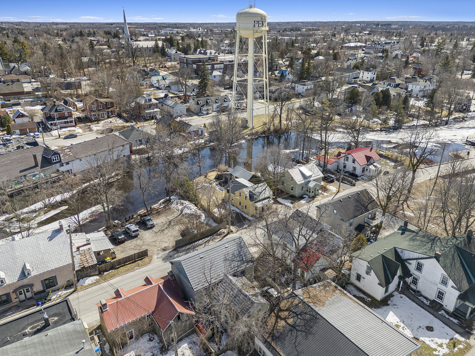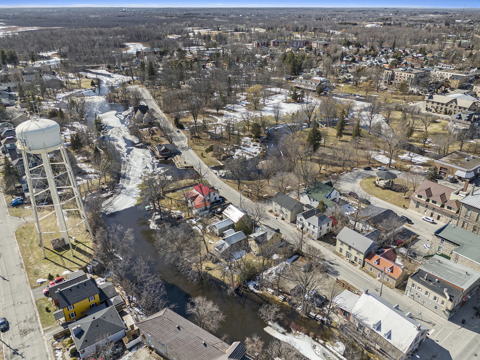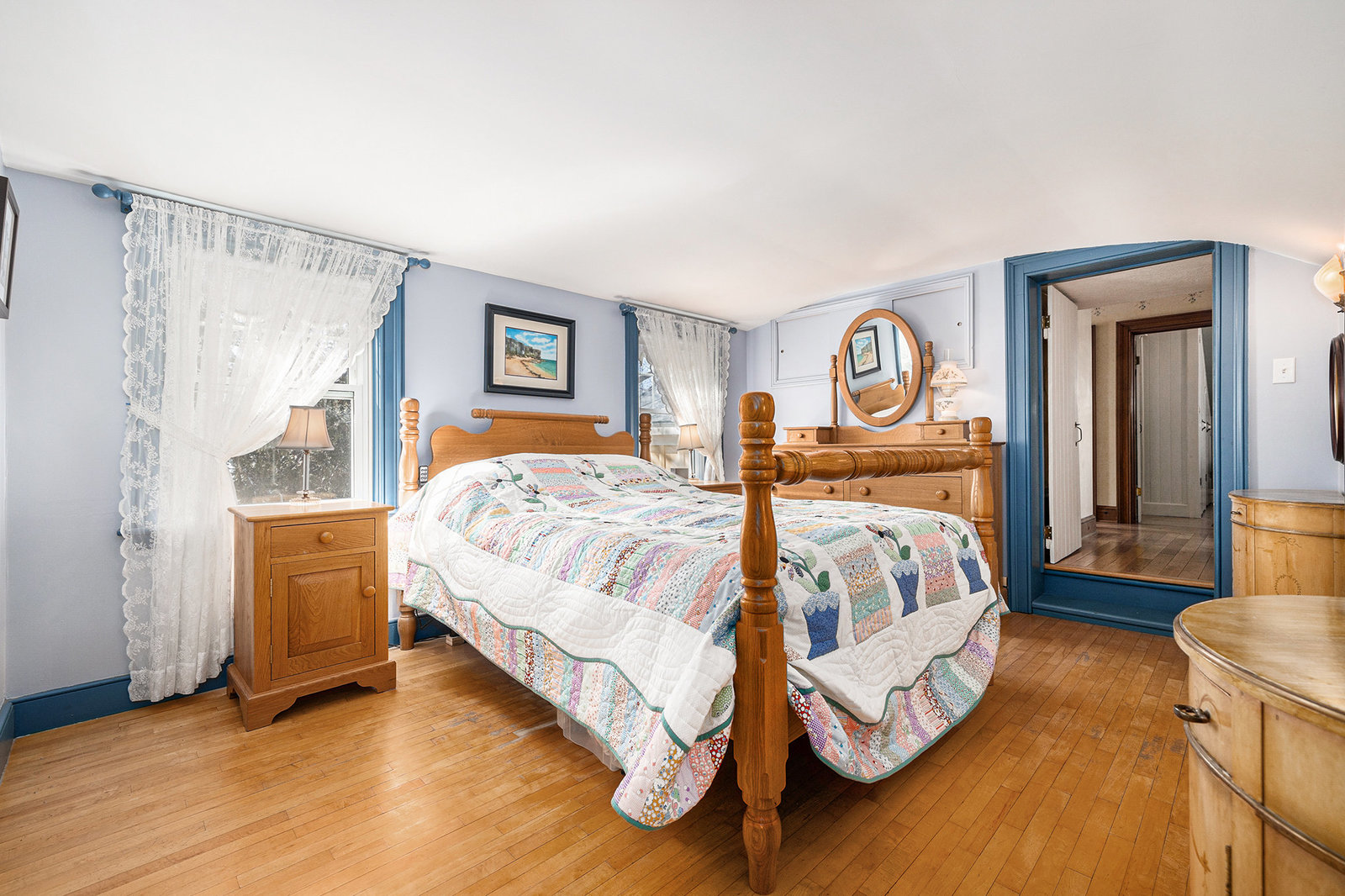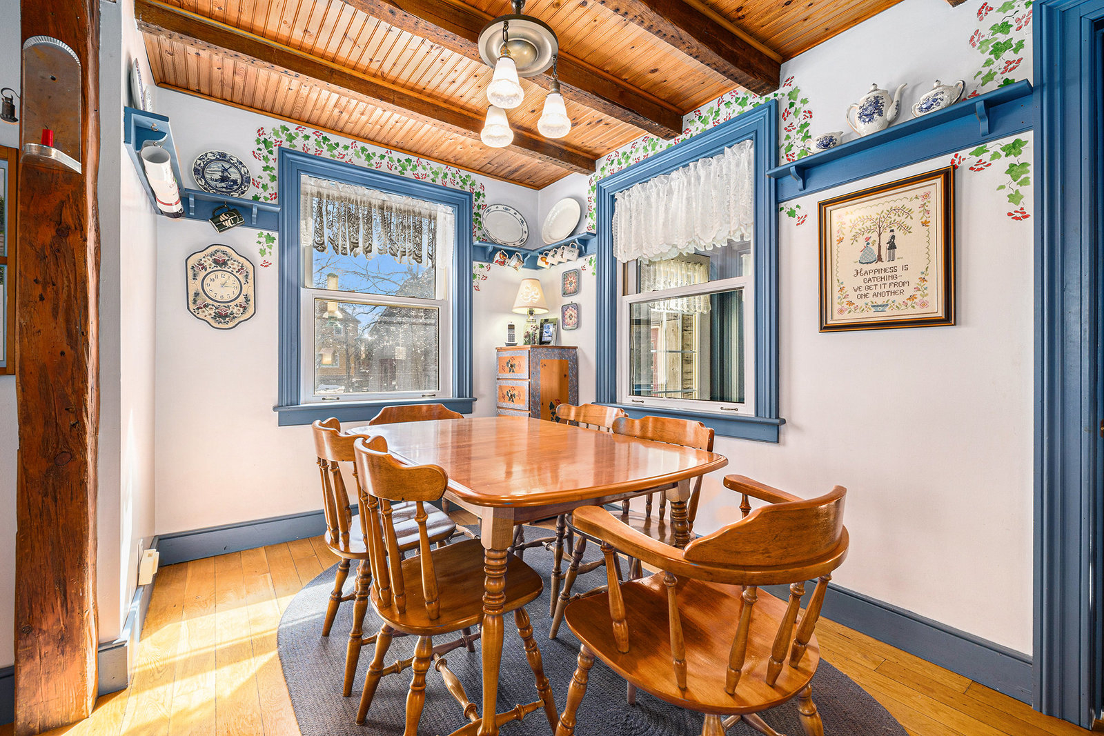 Imagine living within steps of all that downtown Heritage & Heart Perth has to offer, on your very own beautiful riverfront lot! Thought to be one of Perth's most photographed houses, was also featured in the Christmas house tour and was loved by all 800 people who attended. The Tay Navigation Company had originally built a small stone building on the property in 1820. Remains of its stone foundation can still be found on the property & is believed to be part of the foundation under the kitchen. The current home was built around 1840 and still highlights much of the original heritage and charm of that time period but has been sensitively renovated over the years to enjoy modern amenities. The current owners have enjoyed this home and property for 47 years! Features of this lovely 1 1/2 storey home include original pine floors & warming gas fireplace in living room, with a den & powder room just off front foyer. The large country sized kitchen, with open beamed ceiling, provides plenty of cabinet & counter space, walk-in pantry, back stair case to upper level and side door access in from heated four season porch. Completing the upper level you will find laundry, a small desk/sewing nook, 2 good sized bedrooms, each with painted pine floors & built-in closet space, 3 piece bathroom with claw foot tub & custom pine vanity and a generous sized primary bedroom with loads of storage/closet space & back stairs access to the kitchen. The property is ...