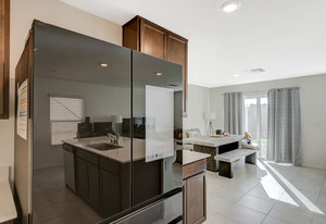 with tankless water heater The inviting great room opens to a...