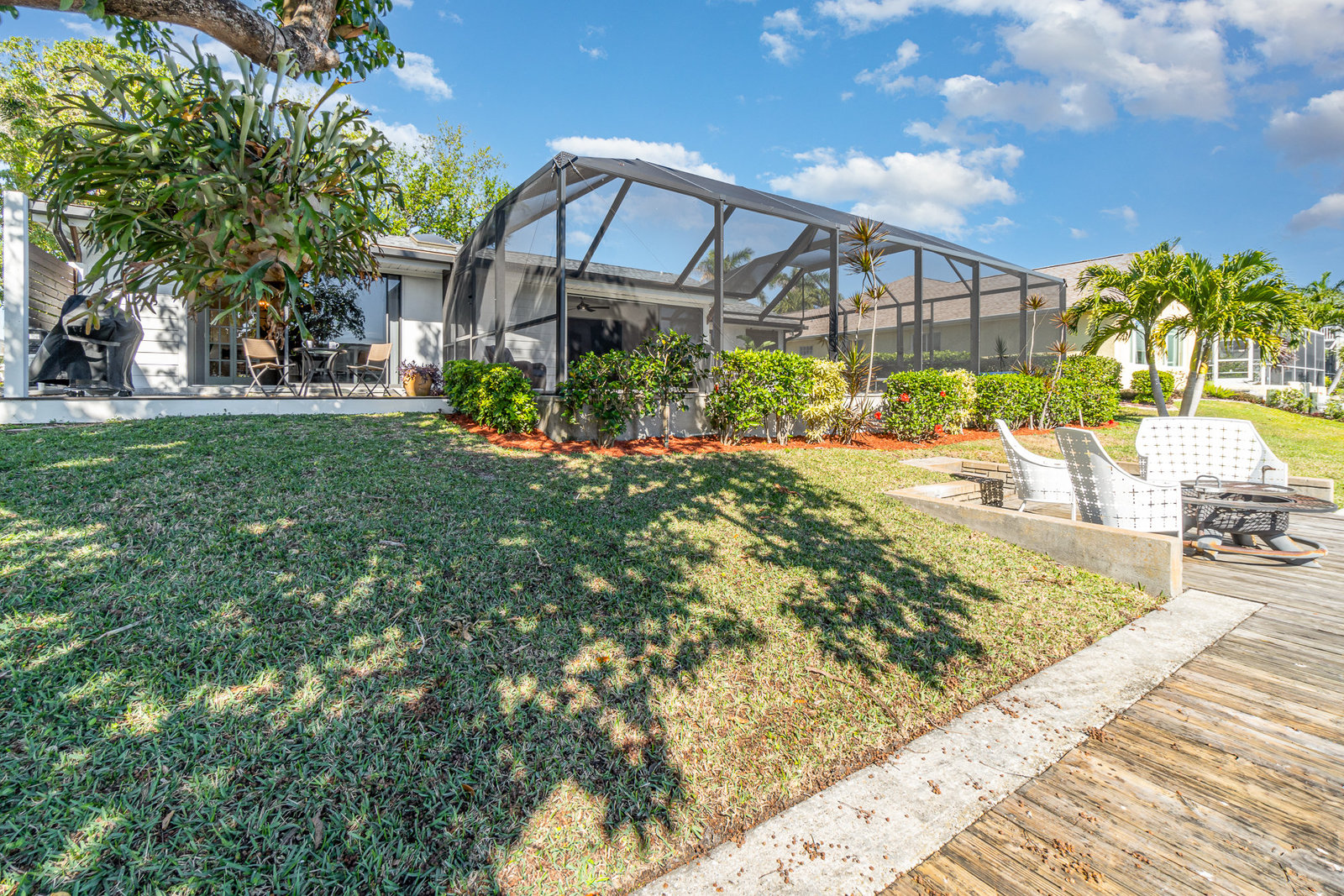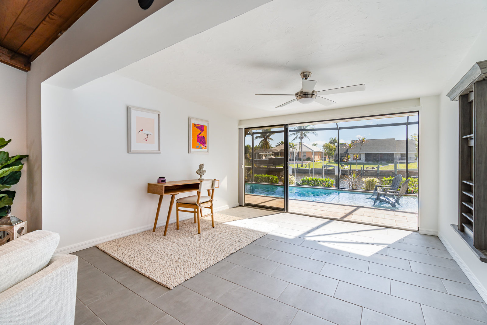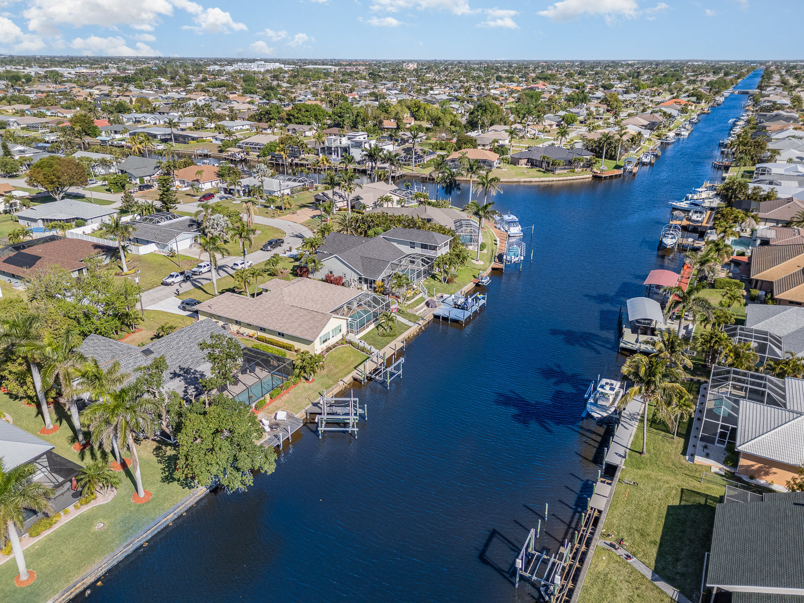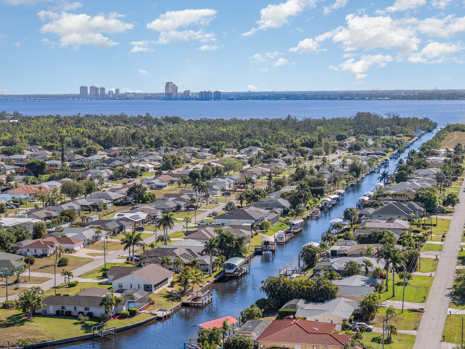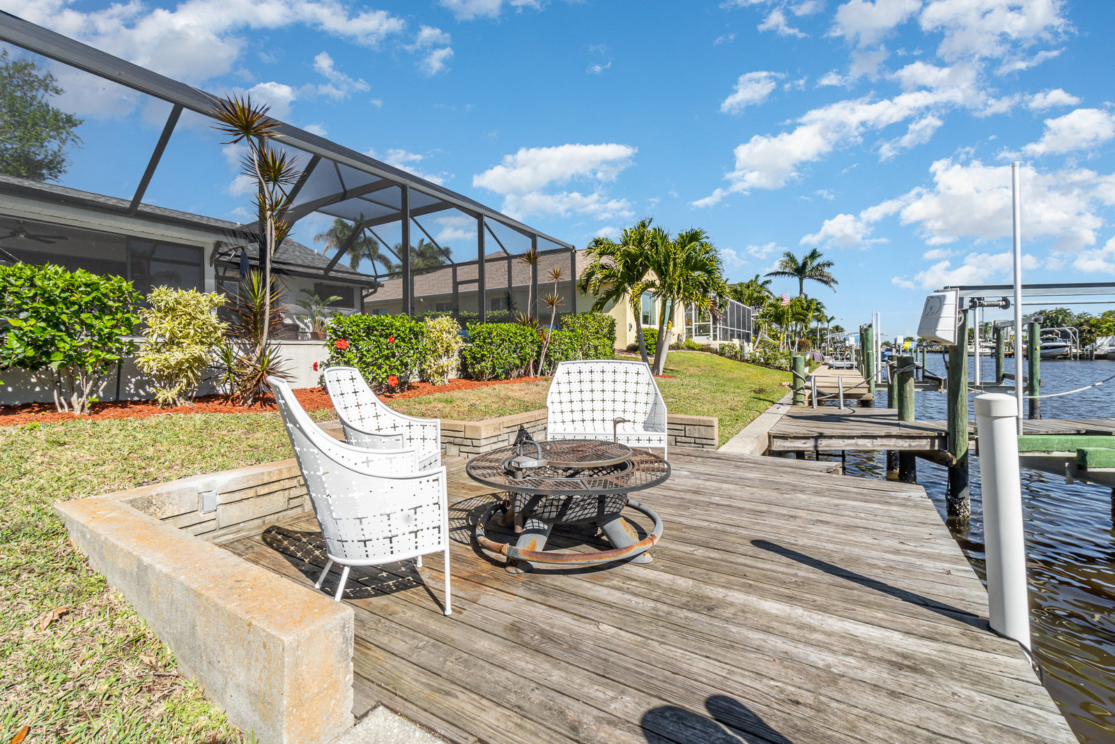 Welcome to your dream home in the heart of a boater's paradise! This stunning Florida Ranch residence offers direct Gulf access within 5-minutes from your dock to the Caloosahatchee River. Say goodbye to the hassle of traffic and enjoy adventures on the water! Imagine spending your afternoons boating for drinks, dinner, and shopping at popular local spots in downtown Fort Myers and Cape Coral. With the Gulf of America just a short boat ride away, you can be beachside snorkeling and shelling in 30-minutes from your dock! This beautiful 3-bedroom, 2-bath home sits on the highly desirable sailboat acess Meade Canal and features a 15,000lb. boat lift making it easy to set sail whenever the mood strikes! Relax in the screened lanai with a saltwater electric heated pool, complete with a sun ledge for those easy nights waving to passing boats or kayakers as they glide by. Special features include a chef inspired eat-in kitchen with ample quartz countertop space, deep well sink, and stainless-steel appliances. The primary suite offers a newly remodeled bathroom, a walk-in closet, and patio doors that open up onto the lanai, a perfect spot to drink your favorite beverage. The second and third bedrooms have large closets with organizers providing ample space for guests. The Den located right off the kitchen can function as an office space or game room with sliders that lead out to the grilling and outdoor dining area that offer beautiful sunrise water views. The perfect spot to enjoy your morning coffee. Step outside to your private backyard, where you can relax and enjoy the beautiful Florida weather by the firepit while fishing off your dock. When you must venture out in your car, this home is within 5-miles of delicious restaurants and entertainment for example a movie theater, bowling, water park, ziplining, mini-golf, bumper boats, paintball, and wall climbing. For sports enthusiasts, the local racquet center offers 32 pickleball and 12 tennis courts. Move-in ready and potentially fully equipped, this home ensures a seamless transition to your dream lifestyle. Don't just dream it—live it!