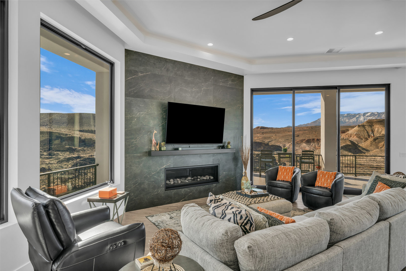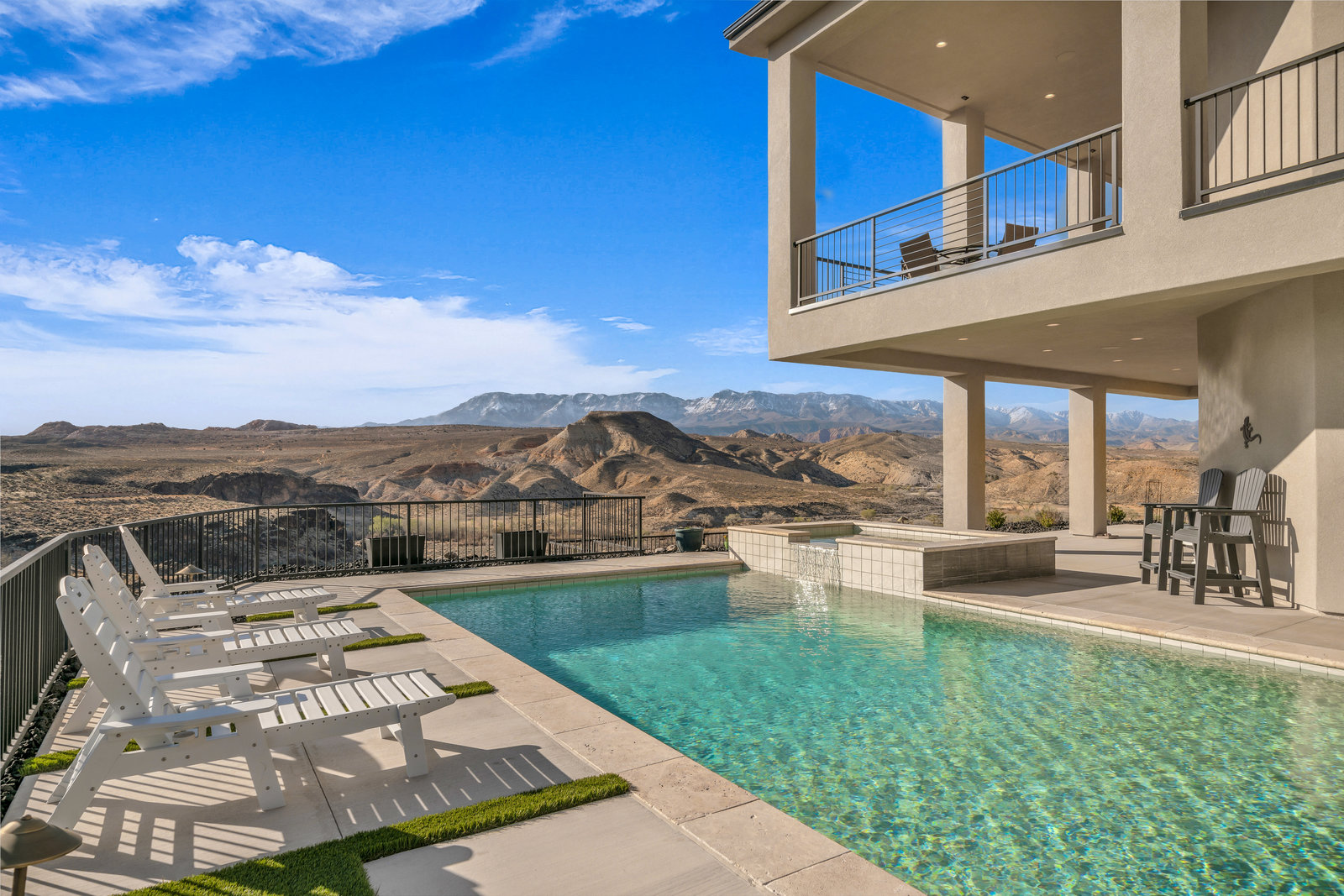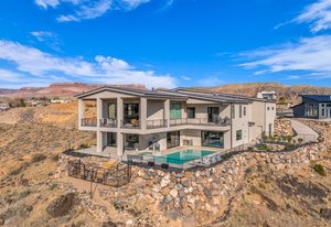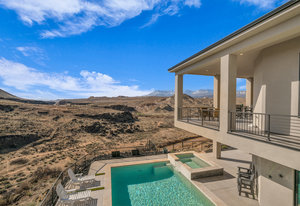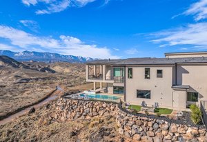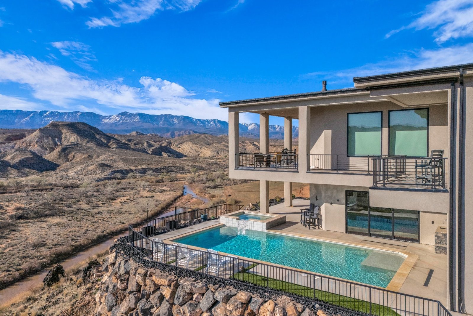 This remarkable home offers much more than meets the eye, providing a truly unique living experience. Nestled above the stunning Confluence Park protected by the Red Cliffs Desert Reserve, with direct access to hiking trails right out your back door. An Anasazi cave once occupied by Paiute and Anasazi Indians is an historical treasure right on this property. This custom-designed home boasts breathtaking 270-degree unimpeded views from its unique perch atop a peninsula basalt cliff. Borders protected lands w/hiking trails outside your door, stunning panoramas of the Virgin River, a dramatic volcanic gorge, and inspiring Pine Valley Mtns.