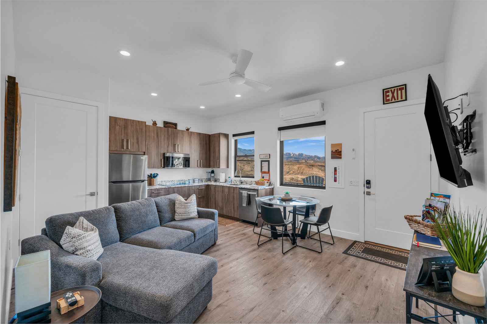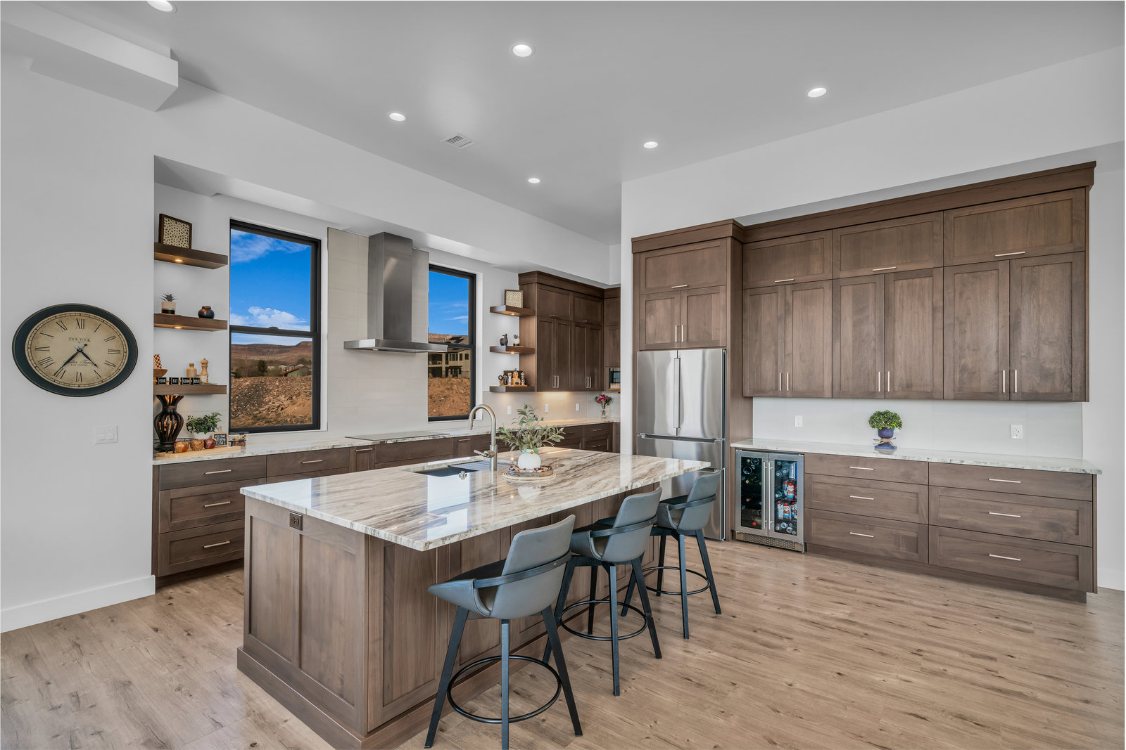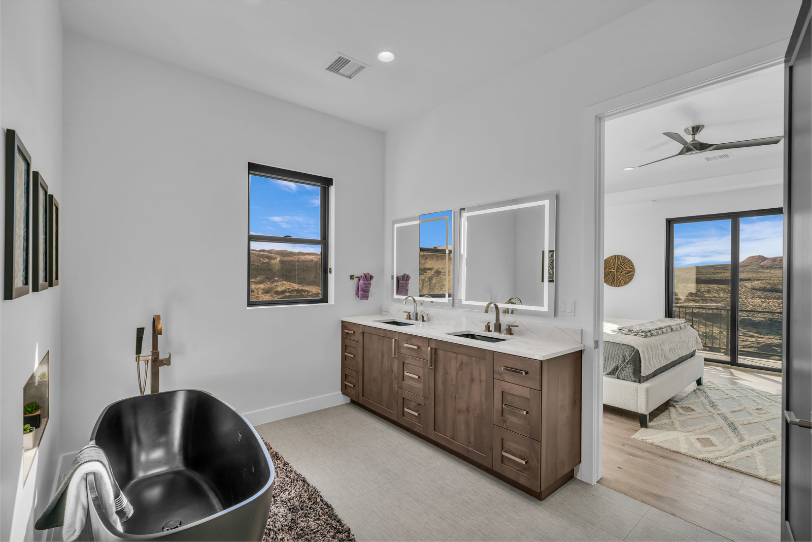 This remarkable home offers much more than meets the eye, providing a truly unique living experience. Nestled above the stunning Confluence Park protected by the Red Cliffs Desert Reserve, with direct access to hiking trails right out your back door. An Anasazi cave once occupied by Paiute and Anasazi Indians is an historical treasure right on this property. This custom-designed home boasts breathtaking 270-degree unimpeded views from its unique perch atop a peninsula basalt cliff. Borders protected lands w/hiking trails outside your door, stunning panoramas of the Virgin River, a dramatic volcanic gorge, and inspiring Pine Valley Mtns.