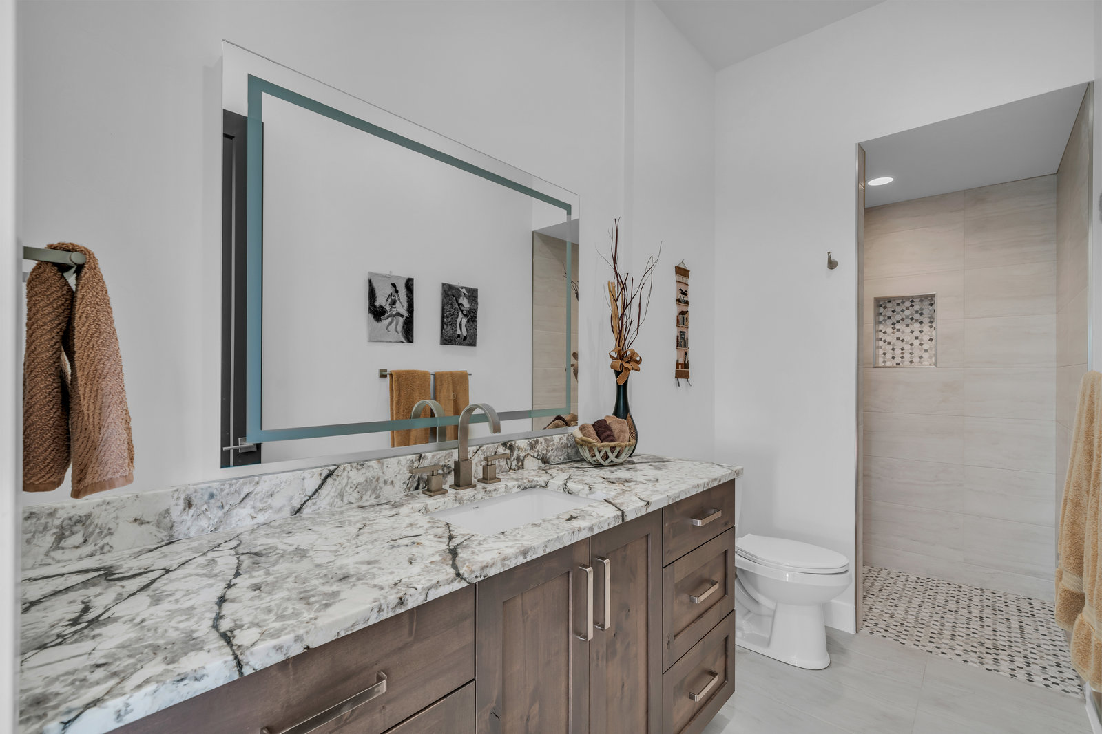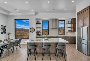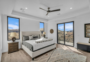 The main level provides seamless living with a spacious primary ensuite, a guest bedroom, an office, and an expansive kitchen, dining, and living area-perfect for both relaxation and entertaining. Sliding doors and windows open up to a covered patio, allowing you to take in the awe-inspiring natural landscape and views.