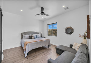 The walkout basement adds even more value with private bedrooms, a kitchenette, a bar, a cozy den, ample entertainment space, and plenty of storage. Outside, the resort-style backyard with a refreshing pool and an outdoor fireplace offers the ultimate in fun and relaxation. For those seeking additional income, this property includes three separate casitas for hosting guests OR could be used for a nightly rental business if it is your primary residence.