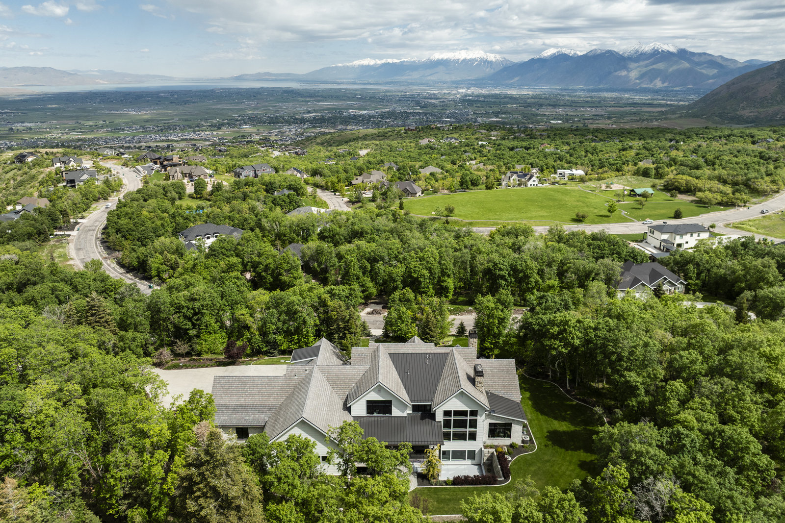Privacy. Seclusion. Serene. Peaceful. Beautiful. These are only a few reasons why you will love the location of this amazing home nestled within the trees on a 2.6 acre lot in Woodland Hills. Built by McEwan Construction, this property is the perfect mix of elegance and fun. Your family will love the amenities: a 46'x36' basketball court that can also be used for pickleball, a rock climbing will with an automatic belay, a resistance pool, hot tub, two exercise rooms, a game room, a huge theater room, and a children's playhouse. Some of the most notable features of the home are the reclaimed wood elements. There are large wood beams that were from old barns in Ohio, shiplap from a ranch house in Texas, and the wood floors on the main level are a rustic reclaimed hickory and they look so good. The heart of the home is the chef's kitchen and the two-story vaulted family room that boasts a wall of windows and a gorgeous stone fireplace. The kitchen is well equipped with Wolf and SubZero appliances, plenty of countertop space, and a wonderful butler's pantry. Between the island, dining room, and family room there is seating for everyone, and when you combine that with all of the fun elements this one of the best entertaining homes around. Of course, the primary suite is spectacular, the office is perfect for working from home, the living room is ideal for a piano, and the bedrooms all have their own private bathrooms. Plus, there is a 4 car garage and the driveway has radiant heat. It is one of the most spectacular homes and locations anywhere along the Wasatch Front. The adjacent one-acre lot is also available if you want a little more land.