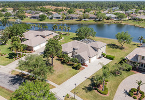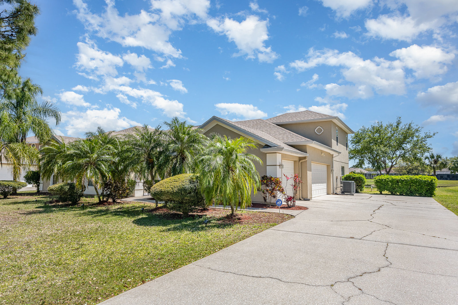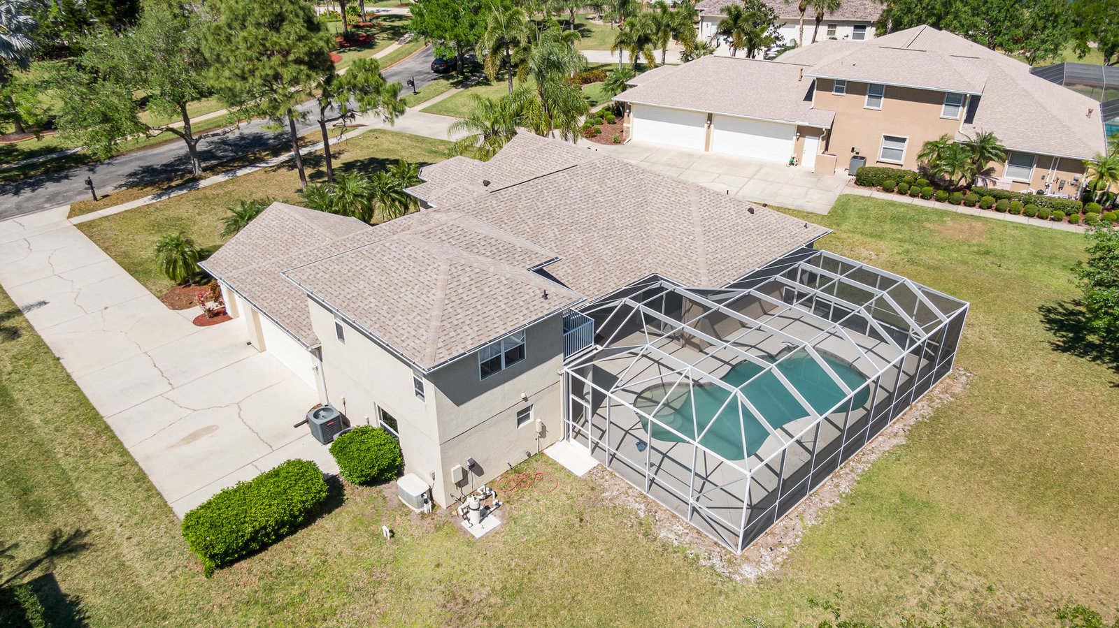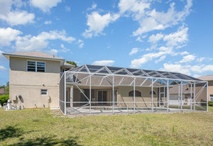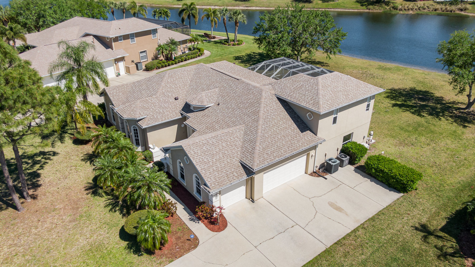 Welcome to Laurelwood, one of the nicest communities in Palm Bay with Beautiful tree lined streets featuring estate sized lots. This Courtyard style home is perfect for big or multigenerational families. When you walk thru the front door you are in the courtyard overlooking the screened in pool perfect for family gatherings and entertaining. To the left as you enter you will see the door to the main living area which features the main suite and a second bedroom. There is a large kitchen featuring an abundance of cabinets, granite countertops, GAS range, and a breakfast nook overlooking the beautiful front yard. The main bedroom has a slider overlooking the pool and Courtyard. Back out in the courtyard there is an entrance to the gigantic three car garage with tons of storage. There is a staircase leading to the supersizes guest bedroom with expansive views of the pool and lake out back .There is another sliding glass door off the courtyard that leads to the 4th bedroom with fantastic views of the pool and an attached bath that also doubles as a pool bath. Additional upgrades include roof (2024) dual AC units (2021), hot water heater (2020), accordion shutters, and a sprinkler system. Laurelwood is a desirable gated community with resort-style amenities, including a clubhouse, fitness center, basketball court, playground, RV/boat storage, and tennis courts. This is an awesome home worth checking out!