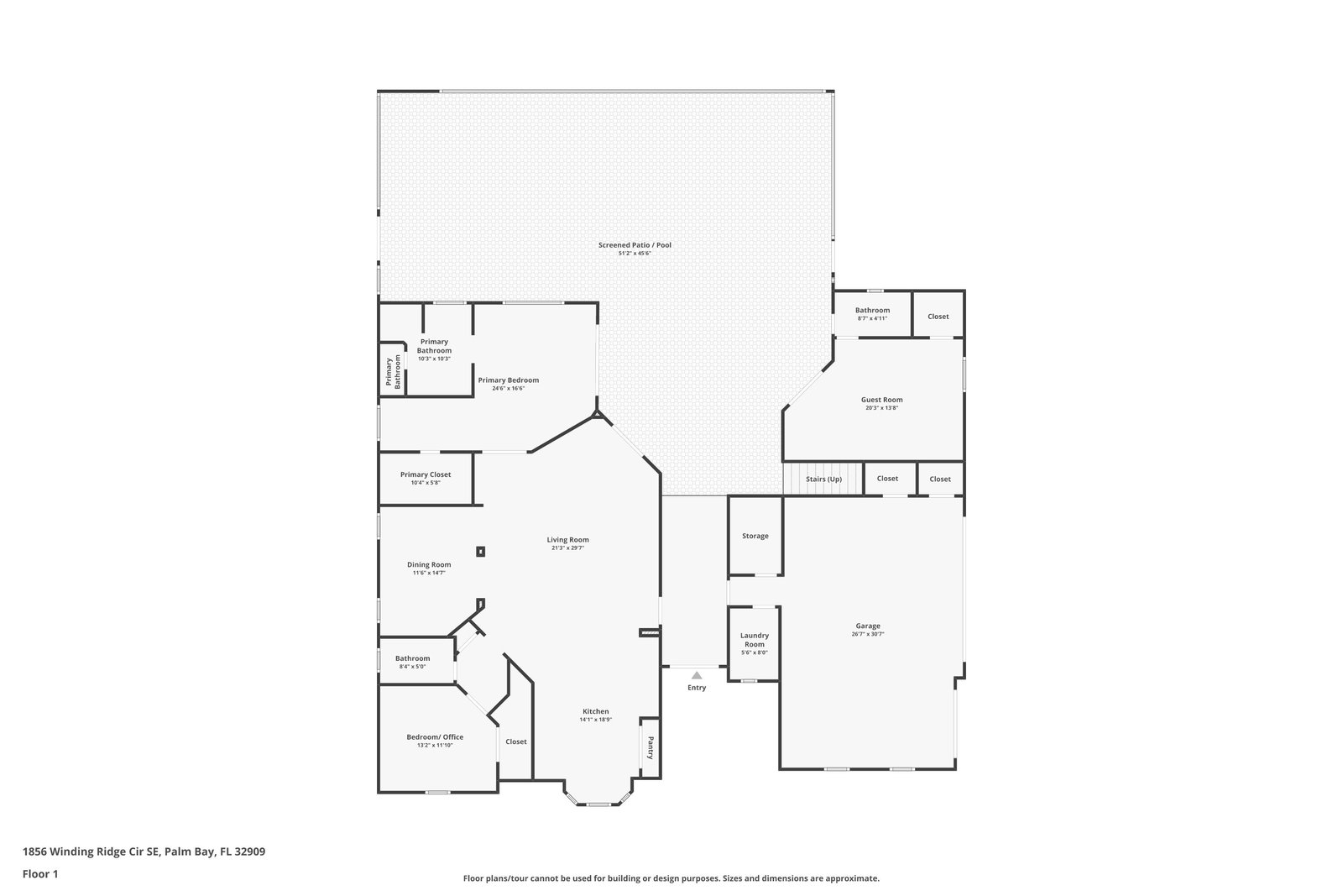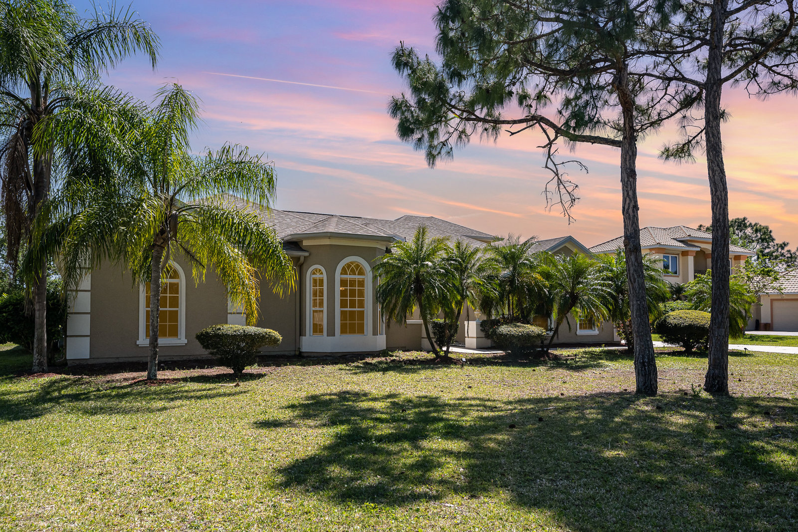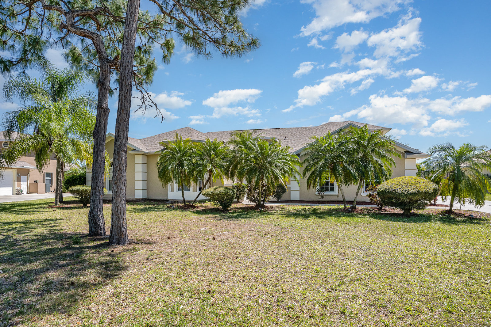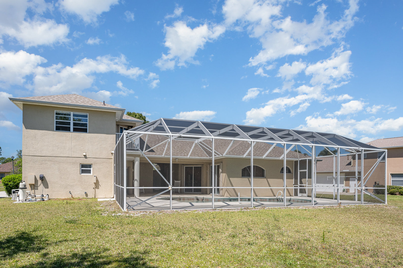 Welcome to Laurelwood, one of the nicest communities in Palm Bay with Beautiful tree lined streets featuring estate sized lots. This Courtyard style home is perfect for big or multigenerational families. When you walk thru the front door you are in the courtyard overlooking the screened in pool perfect for family gatherings and entertaining. To the left as you enter you will see the door to the main living area which features the main suite and a second bedroom. There is a large kitchen featuring an abundance of cabinets, granite countertops, GAS range, and a breakfast nook overlooking the beautiful front yard. The main bedroom has a slider overlooking the pool and Courtyard. Back out in the courtyard there is an entrance to the gigantic three car garage with tons of storage. There is a staircase leading to the supersizes guest bedroom with expansive views of the pool and lake out back .There is another sliding glass door off the courtyard that leads to the 4th bedroom with fantastic views of the pool and an attached bath that also doubles as a pool bath. Additional upgrades include roof (2024) dual AC units (2021), hot water heater (2020), accordion shutters, and a sprinkler system. Laurelwood is a desirable gated community with resort-style amenities, including a clubhouse, fitness center, basketball court, playground, RV/boat storage, and tennis courts. This is an awesome home worth checking out!