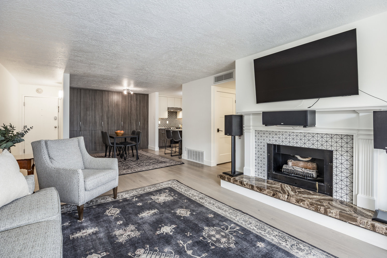 Step into this sunny turnkey 2-bedroom, 2 full bath, high end design in the heart of the Salt Lake City. Canyon Road Towers Condominium is arguably one of the best downtown locations where urban and nature intersect. Mature trees, green space & adjacent City Creek Park, enjoy the cityscape from your south facing patio. The perfect intersection of city living and the great outdoors! A perfect pied a terre in the City and best of all it is completely redone! The Sellers carefully re-imagined and upgraded this space with additional custom cabinetry for generous storage, tasteful stone counter surfaces, high efficiency kitchen appliances, engineered hardwood flooring and 100% wool carpet. Both bathrooms were completely renovated featuring neutral tile and high-end fixtures. The Master Bedroom suite was reconfigured to improve utility and add more closet space. The sleek fireplace will offer warmth and style to the comfortable living area. A new heat pump was installed in 2024 with smart thermostat ensuring efficient heating and cooling year-round. One secure garage parking spot and a generous storage unit located on the same floor of the unit are included. City conveniences abound! Steps from Salt Lake City's most iconic landmarks, galleries, museums, restaurants, City Creek shopping, Harmons and the Utah State Capitol. Easy access to the University of Utah, Westminster University, Hospitals (University, Huntsman, Primary Children's, LDS), Research Park, and minutes from the Salt Lake City International Airport. Stroll City Creek Canyon a block away, picnic in Memorial Grove Park and hike or bike the Bonneville Shoreline trail adjacent. HOA covers water, sewer, garbage, basic cable TV, electricity, gas, snow removal, grounds, building and common area maintenance - PLUS the amenities: on-site management, a generator, newly surfaced tennis & pickleball courts, an indoor pool, hot tub, sauna, exercise room, and social room for entertaining guests.
