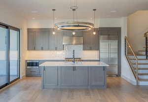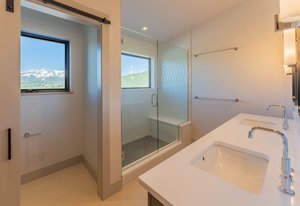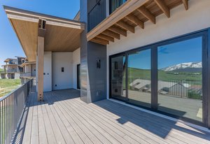 These modern mountain homes feature three unique levels of state of the art living! The upper level primary suite is air conditioned and offers a gorgeous bath, vaulted ceilings, a washer-dryer space, a large closet, a covered balcony and dramatic views of our valley's amazing peaks. The main level living, dining and kitchen areas enjoy air conditioning, floor-to-ceiling glass and sliders that showcase those same utterly stunning valley and peak views, a massive deck, Wolf-Subzero appliances, radiant in-floor heat, wide plank oak flooring, designer lighting, and a beautiful floor-to-ceiling gas fireplace with a cool metal surround. The main level also includes a bath and a flex space perfect for a home office or theatre use. The lower level features a junior suite with an attached bath and two more bedrooms that share a full bath with a double vanity. There is another washer-dryer set up and storage closets on this level. Two of the lower level bedrooms enjoy dedicated access to the hot tub patio out back. 153 Snowmass is 2,832 SF with 4 beds, 3.5 baths and includes a snowmelt driveway and a heated garage.