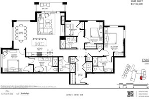 The E203 residence at Kindred is a 2-bedroom, 2-bathroom condominium spanning 1,320 square feet. Located on the 2nd floor of the East Tower, this residence offers a beautiful view overlooking the pool deck. This Type A handicap accessible residence is designed with functionality and luxury in mind. The kitchen is equipped with top-of-the-line appliances, including a 36" Wolf Range and a built-in Subzero refrigerator. Additionally, the kitchen features dishwashing drawers, 36" tall countertops along the cabinet wall, and a 34" tall kitchen island, providing ample space for meal preparation and entertainment. This is the largest 2-bedroom floor plan in Kindred Resort ensuring that residents have plenty of room to relax and enjoy their living environment to the fullest.