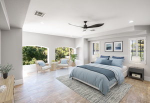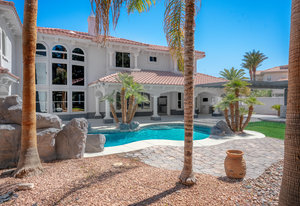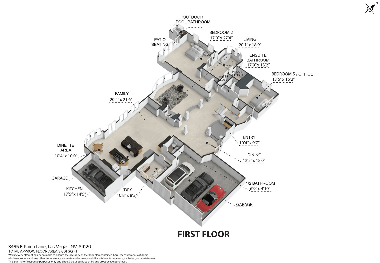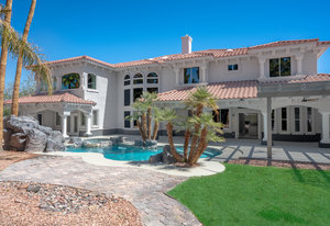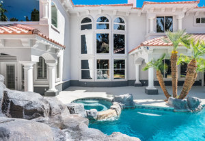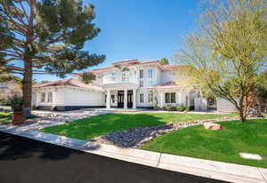 ULTRA VEGAS ESTATE 5 MINUTES TO THE STRIP! Luxurious custom estate in a private gated cul-de-sac with only four homes—no HOA. This stunning 6-bed, 5-bathroom home features dual primary suites (one on each level), a gourmet kitchen with dual islands, granite countertops, high-end stainless steel appliances, a walk-in pantry, a breakfast nook, and 2nd-floor coffee wet bar. The bright and open living room boasts 20ft+ vaulted ceilings, marble-like and tile flooring, and a grand wrought iron staircase. A spacious family room with a double-sided fireplace and a separate formal dining area make this home perfect for entertaining. The secluded backyard is an entertainer’s paradise, offering ...