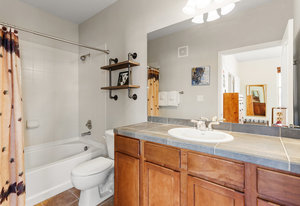 Desirable top floor mountain getaway in Aspen Meadows with full Granby Ranch membership! This updated, fully furnished unit with 2 bedrooms and 2 full baths offers an open floor plan with vaulted ceilings, recently upgraded LVP flooring, and an abundance of windows providing natural light and beautiful views. The functional kitchen has a convenient breakfast bar with new/upgraded granite counters and a pantry. The open and warm family room, adjacent to the kitchen and dining area, provides a welcoming atmosphere with a gas fireplace. Located off this space is a deck – perfect for enjoying the serene outdoor setting backing to open space. The well-designed master suite offers a private bath ensuite. The second bedroom is generous in size and utilizes a full bath just off the hallway. Conveniently located within the unit is a washer and dryer. This unit also includes a separate storage closet on the ground level in addition to the storage closet on the deck. The community hot tub is a short walk away. Start taking advantage of the mountain lifestyle today with easy access to year-round activities including skiing/boarding, golf, biking, hiking and fishing.