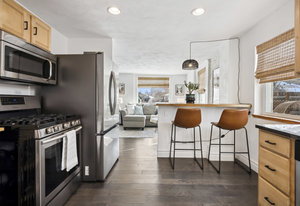 Welcome to this beautifully updated bungalow, nestled in the heart of Denver! This charming residence features three generously sized bedrooms and two tastefully designed bathrooms, perfectly blending modern amenities with timeless bungalow appeal. The kitchen, equipped with sleek granite countertops, a gas range, ample storage, and stainless-steel appliances, is a chef’s dream—ideal for both preparing meals and entertaining guests. Freshly revitalized with new flooring and a coat of paint throughout, the home radiates a bright and welcoming ambiance.