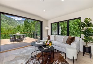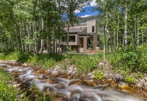 Welcome to a truly exceptional mountain contemporary home that perfectly blends elegance w/ the breathtaking beauty of East Vail. This to-the-studs remodel & expansion has been reimagined to create a sophisticated retreat perched above a private meadow and set within Aspens, offering sweeping views of the Gore Range. Professionally designed to be the perfect size, this 4-bed home balances luxury & value, providing all the desired elements while keeping the price point attractive. As the kitchen is the heart of every home, this one is a showstopper—featuring stunning views, a spacious island, and high-end appliances perfect for both casual meals & gourmet cooking. The kitchen flows effortlessly into multiple living spaces. One side opens to a sitting area leading to the expansive deck through folding glass doors, offering a seamless indoor-outdoor living experience ideal for gathering. Ample space for a hot tub, dining, fire pit, & generous sitting area—all set against a breathtaking landscape. Designer open-concept dining area that showcases expansive windows centered around a modern gas fireplace. The private master suite is a serene retreat with vaulted ceilings, large panoramic windows, spacious closets, spa-like bathroom featuring a luxurious wet room—an open-concept space integrating the shower & bathtub gazing at jaw-dropping views, and all surrounded by floor-to-ceiling tilework. Every detail has been professionally curated for comfort & style, from multi-zone central A/C to custom cubby-storage systems perfect for gearing up for mountain adventure. This mtn contemporary home is as practical as it is beautiful. Just a short walk to the free bus stop, close to the Vail Racquet Club & BigHorn Park, effortlessly blending convenience & accessibility. Equipped with an oversized garage & additional private parking for up to four vehicles, it captures the essence of the Vail lifestyle—a perfect fusion of mtn design & luxurious amenities in a coveted location