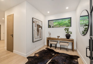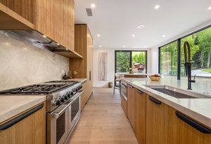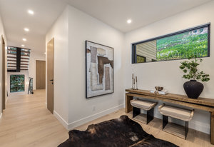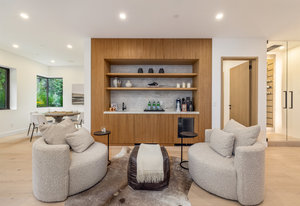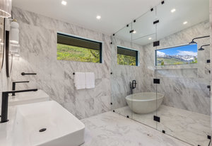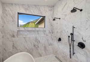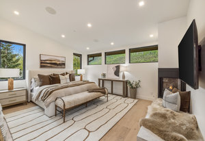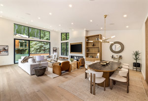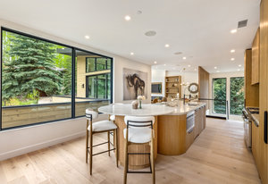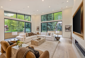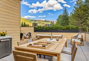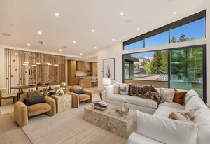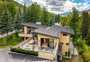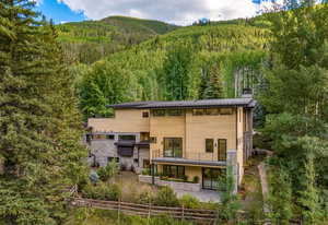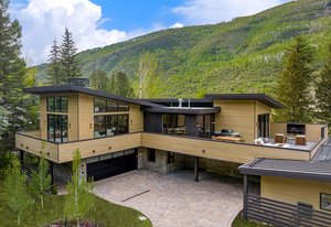 1487 Vail Valley Drive is a newly constructed mountain contemporary residence that captures the essence of luxury alpine living in the prestigious Vail Golf Course neighborhood. Designed by Kyle Webb of KH Webb Architects with interiors by Studio James and built by Mexamer Construction Group, this five-bedroom, 6,174-square-foot home is a masterfully crafted tribute to its surroundings—intentionally designed to frame epic Gore Range views through expansive walls of glass and precisely aligned sightlines that celebrate the grandeur of the landscape. The exterior layers natural materials with intention, combining warm cedar siding, honed stone, blackened steel accents, and expansive glass to echo the texture and contrast of the surrounding alpine environment. Inside, the living room, kitchen, and den anchor the main level, flowing effortlessly into one another and out to a connected outdoor terrace. The living room is centered around a fireplace and soaring ceilings, with expansive windows that flood the space with light and panoramic mountain views. Organic silhouettes and textural millwork carry throughout, from the curved, fluted wood island in the chef’s kitchen to the custom built-ins in the den, which also features a suede-lined, lighted TV surround and wood accent wall. Expansive multi-panel glass doors from the living room, kitchen, and den open to the heated terrace, where a high-end grill station with countertop and cabinet storage, a firepit lounge, open-air dining, and a TV zone wired for speakers make this one of Vail’s most complete outdoor living experiences. The main-level primary suite offers a peaceful escape with mountain views, a fireplace, dual oversized closets, and a discreet washer and dryer. The spa-like bathroom features a soaking tub, glass-enclosed shower, refined finishes, and what may be the most spectacular Gore Range views in the entire Vail Valley. Each of the five bedrooms includes its ensuite bath, and powder rooms are located on both levels for added convenience. A private elevator connects the home without a single stair step, accessible directly from both the garage and front entry. The expansive lower level includes a recreation room with soaring ceilings, a game table and lounge space, a fluted wood wet bar, a beautifully finished wine room, and access to a heated patio with hot tub hookup. A bunk room on an adult scale adds flexibility and fun, with queen-sized lower bunks and thoughtful built-ins, making it ideal for children or additional guest accommodations. Just 300 feet from the free Town of Vail winter shuttle, the home offers unmatched convenience to Golden Peak ski school and lifts, while maintaining the peaceful privacy of a legacy neighborhood. In the summer, walk or bike into Vail Village or enjoy year-round recreation directly across the street at the Vail Golf Club and Nordic Center. With heated patios, a heated driveway, a two-car garage, and substantial additional outdoor living space, 1487 Vail Valley Drive is designed for effortless living in every season. Whether used as a full-time residence or a seasonal escape, it offers a rare combination of new construction, unparalleled views, and a location that seamlessly connects privacy, proximity, and lifestyle. This is Vail—thoughtfully framed, beautifully lived.