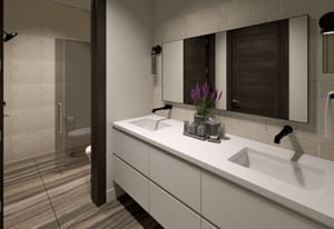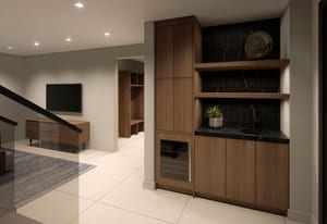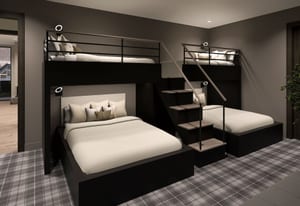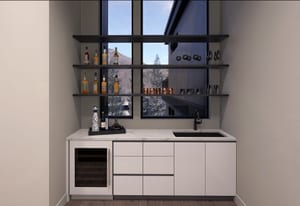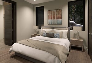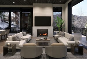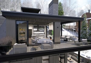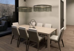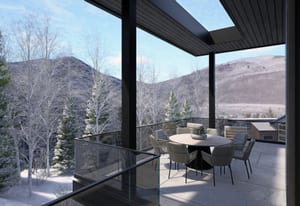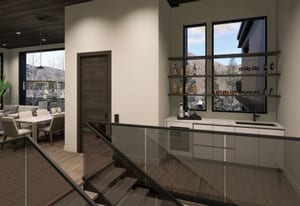 Integrated into the great room level is a private motorized exterior bar window that opens at the push of a button, transforming the kitchen and living space into a true après-ski experience in winter and an open-air extension of the home for summer dinners, fall gatherings, and year-round mountain living. Ski home, step out of boots on the heated outdoor bench, transition gear into custom exterior ski storage with integrated boot dryers and heaters, then settle beside the firepit, relax in the hot tub, or gather at the bar as skiers pass by.