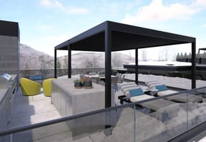 The residence offers approximately 2,553 square feet of heated outdoor living space across multiple levels. The rooftop deck features a built-in grill station and lounge areas for entertaining under alpenglow sunsets, with snowmelt across the driveway, stairs, and patios enhancing ease of ownership.